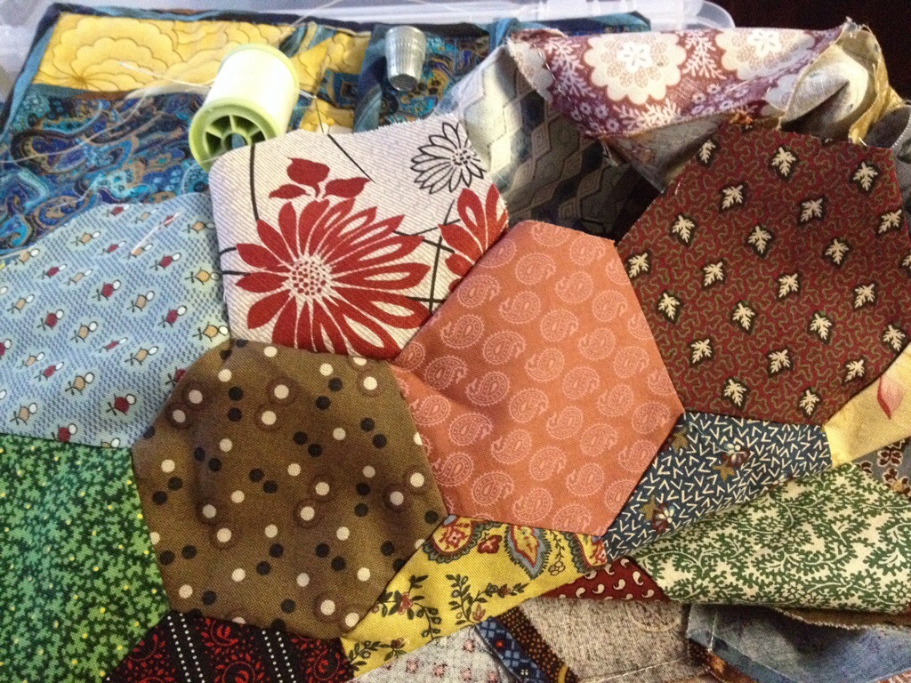 Not much sewing has been happening here. I am making a wee bit of progress on my hexie quilt.