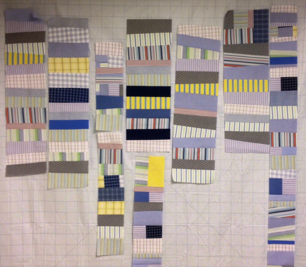 I worked on several different projects yesterday. First my friend Sarah came to work on her quilt.,it is looking fabulous! I will take a picture next time. While she worked on her quilt, I sewed shirting scraps together.
