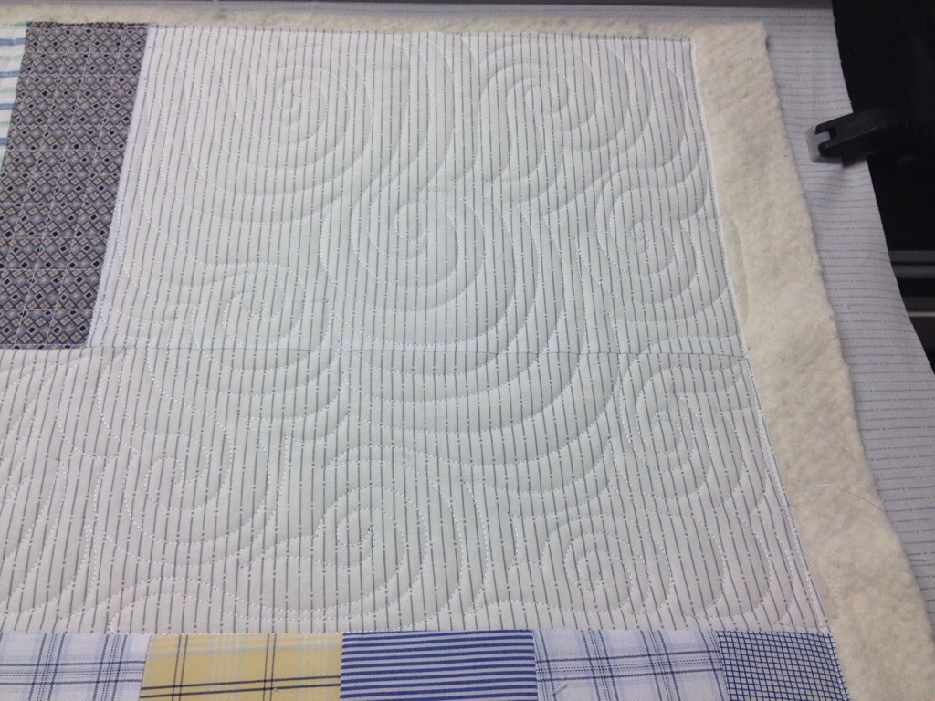 I have a couple works in progress right now. First, the quilting on my shirtings quilt.