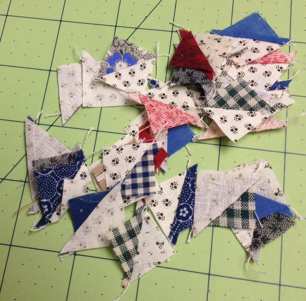 While pulling fabric for this, I found some tiny half square triangles I had saved. How small is too small?