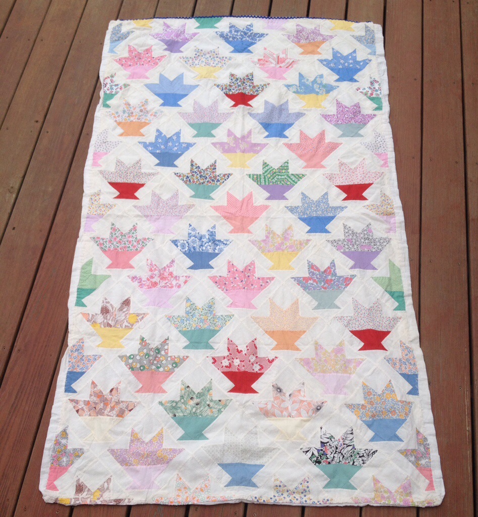 This “quilt” (it doesn’t have batting), appears to be from the 30s. The fabrics in it are just charming!
