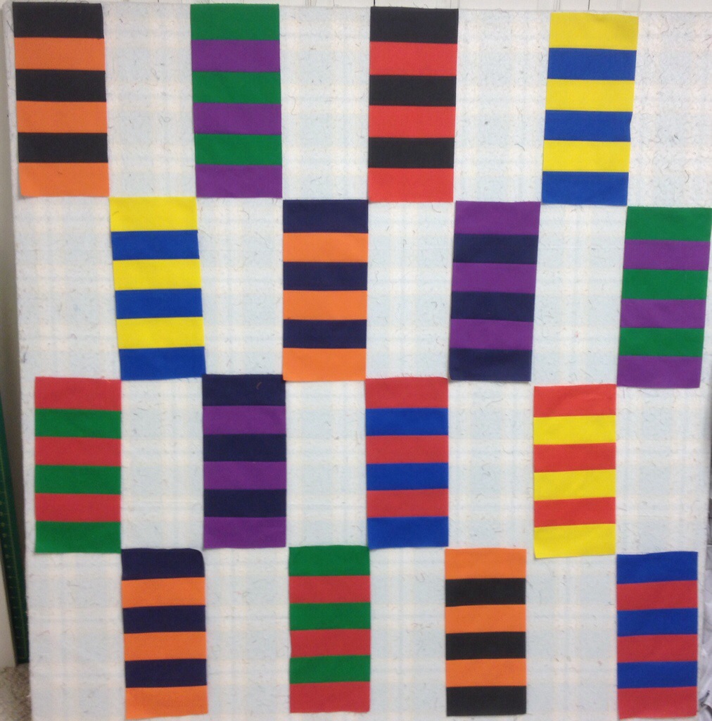 I finished making blocks with the solids jelly roll. I didn’t use the white strips, they just looked too stark. I will probably make a few more blocks out of my stash so this will end up the right size for Quilts Beyond Borders. I have been playing with layouts but I think I like this best.