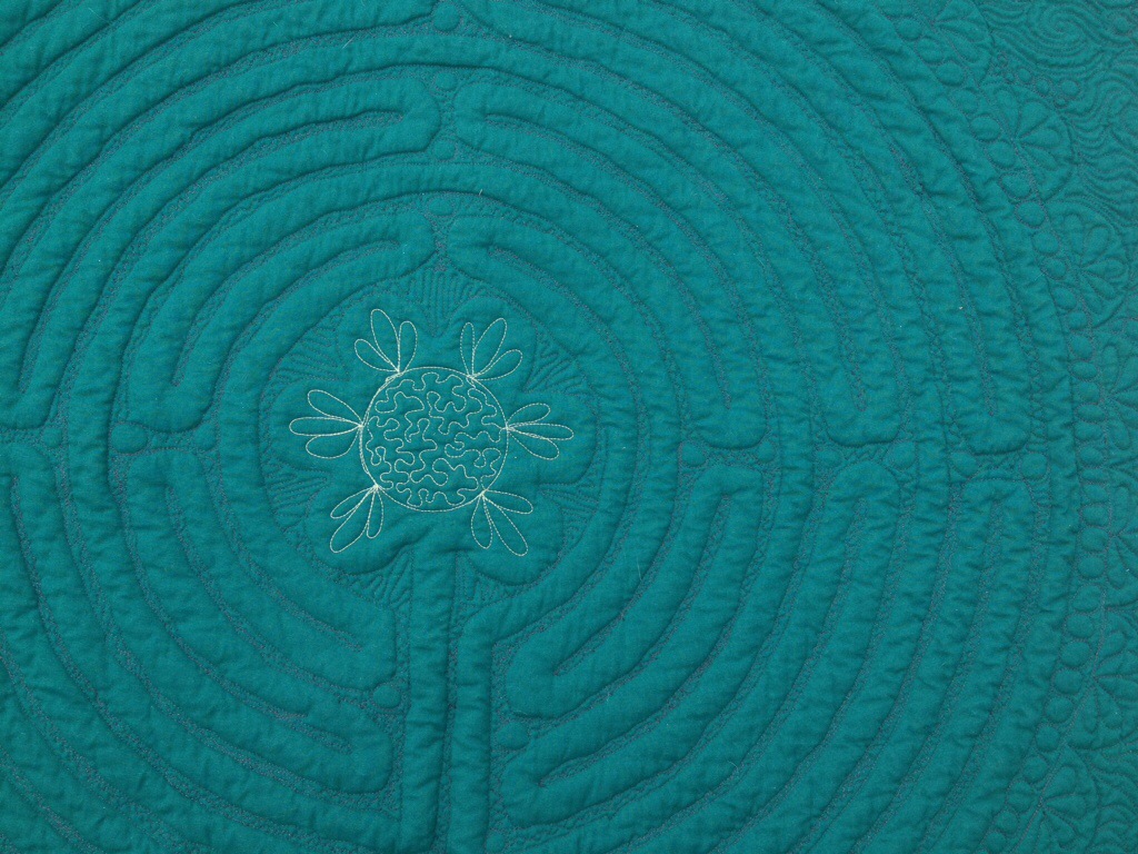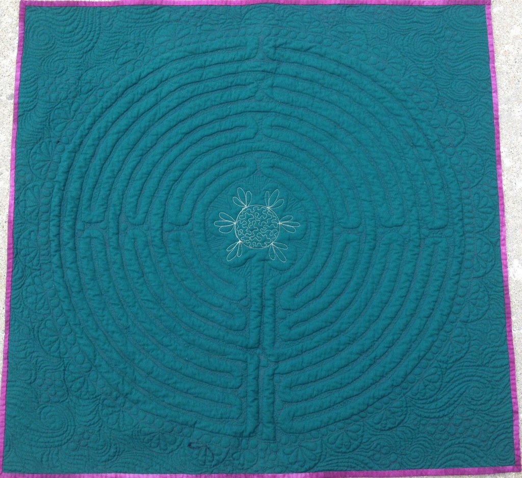 I didn’t manage to trim this so that the quadrants of the labyrinth are square with the edges of the quilt. I might have to go back and fix that.