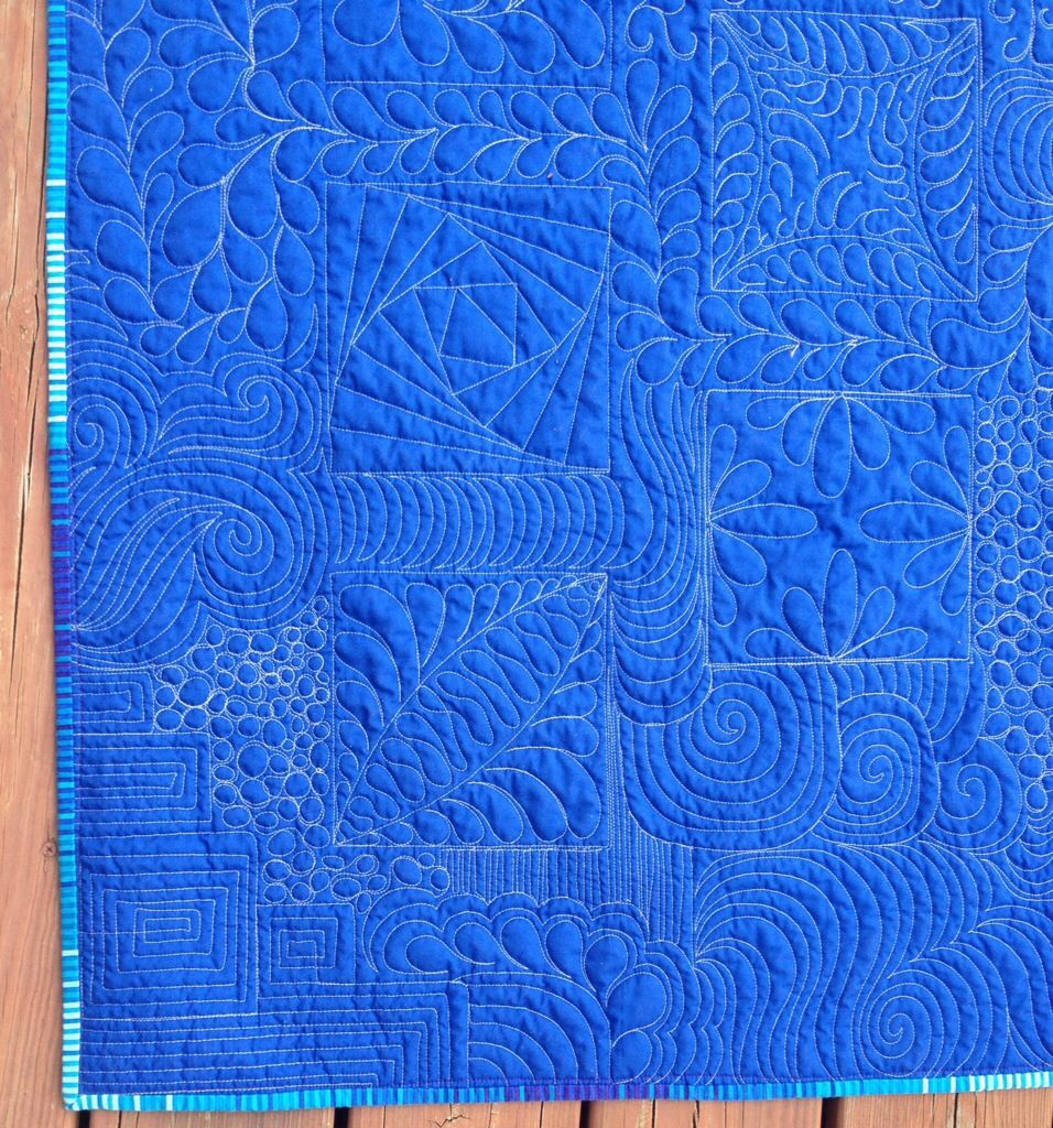 I just love the colors and design of this quilt; I think it would make an awesome full-size quilt for a bed. The quilting is absolutely marvelous!
