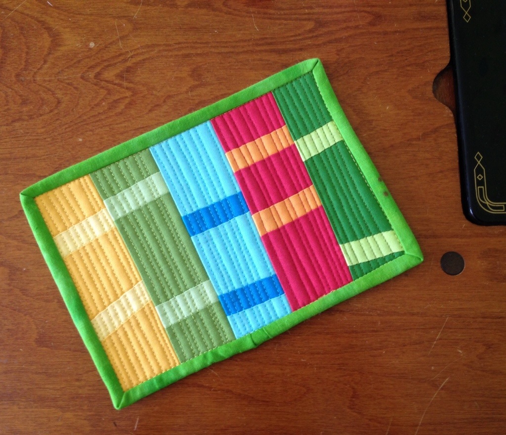 Cute mug rug Katy. And I agree about the not needing a flash or large space to quilt in – just as well as mine often gets quite chaotic, but there’s always the kitchen table at a pinch!