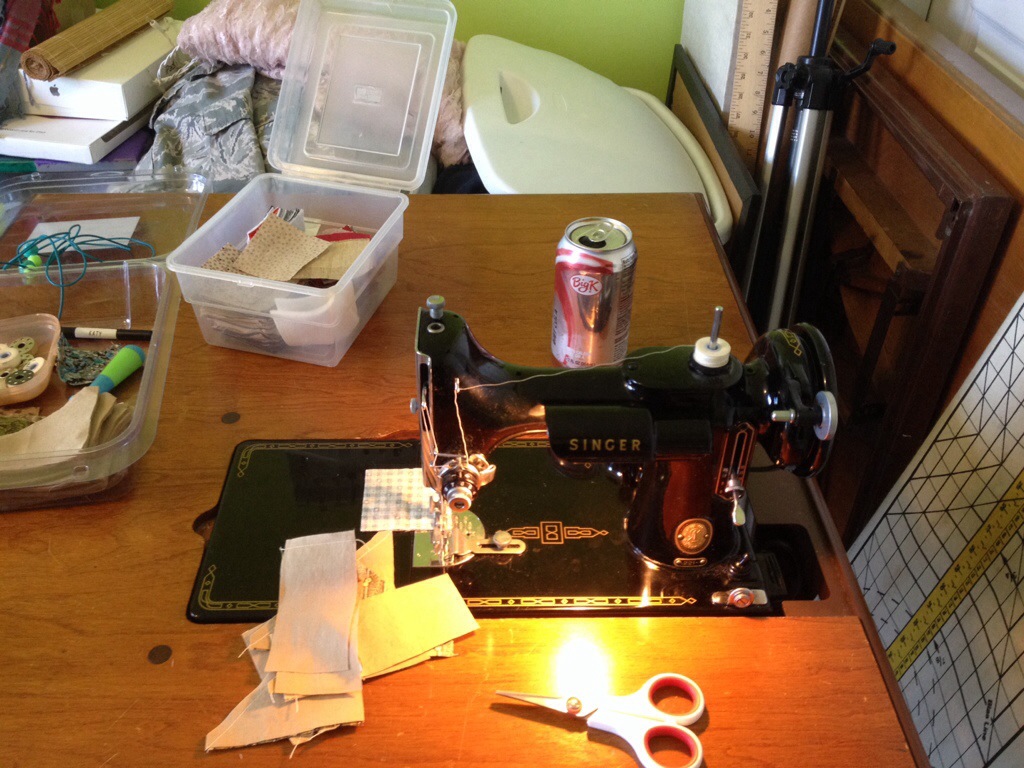 The Churn Dash blocks are coming together nicely, Katy! I was just thinking the same thing that RedSetter wrote. I would hate to spill something on the mug rugs after all the effort of making a set. I just LOVE everything about the vintage Feather Weight. I’m piecing my next quilt with one. Have a great weekend.