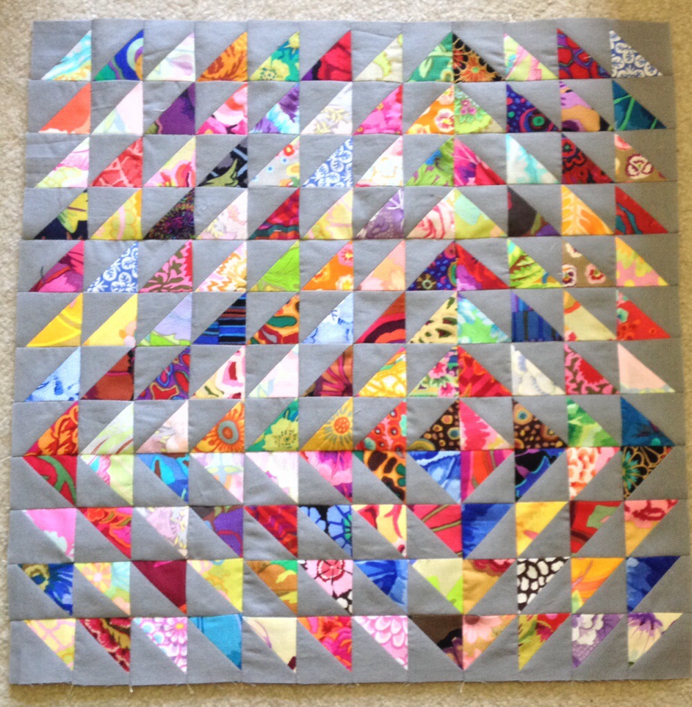 I really like the layout of your HST’s it’s beautiful. Can’t bear the thought of you throwing away the extras though – although I can understand you are at the point where you don’t want to see them again – can’t you sew them together to make something for a child – a dolly quilt or a patch to put on the front of a little tote bag for a child or something.