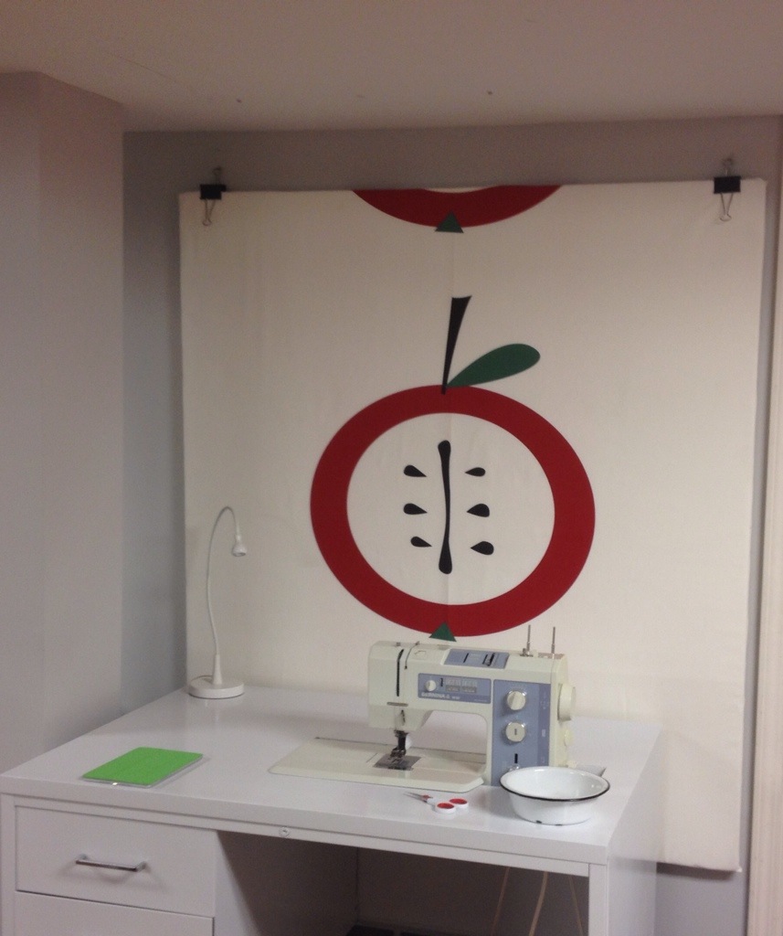 A while back, Daughter #1 picked up some apple fabric from Ikea for me for 50 cents a yard! I used some today to make a bulletin board: