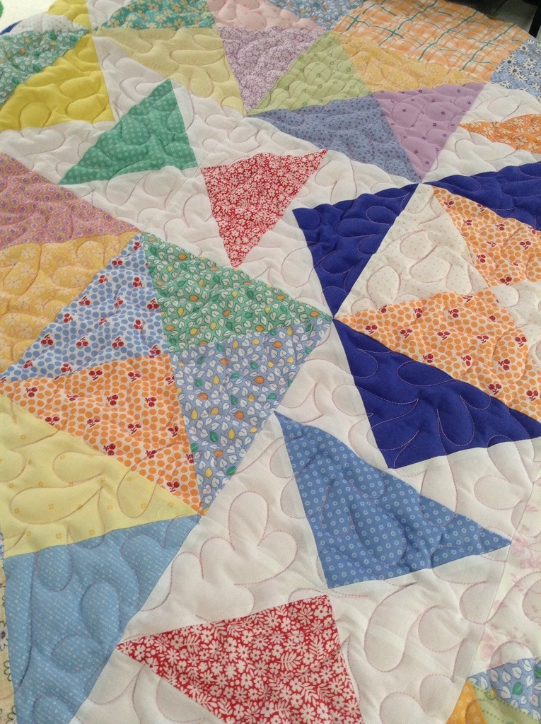 Katy, your problem child (heh heh) finished up beautifully – love the fabrics too! Your little pinwheels are very sweet! You have had a good, productive week!