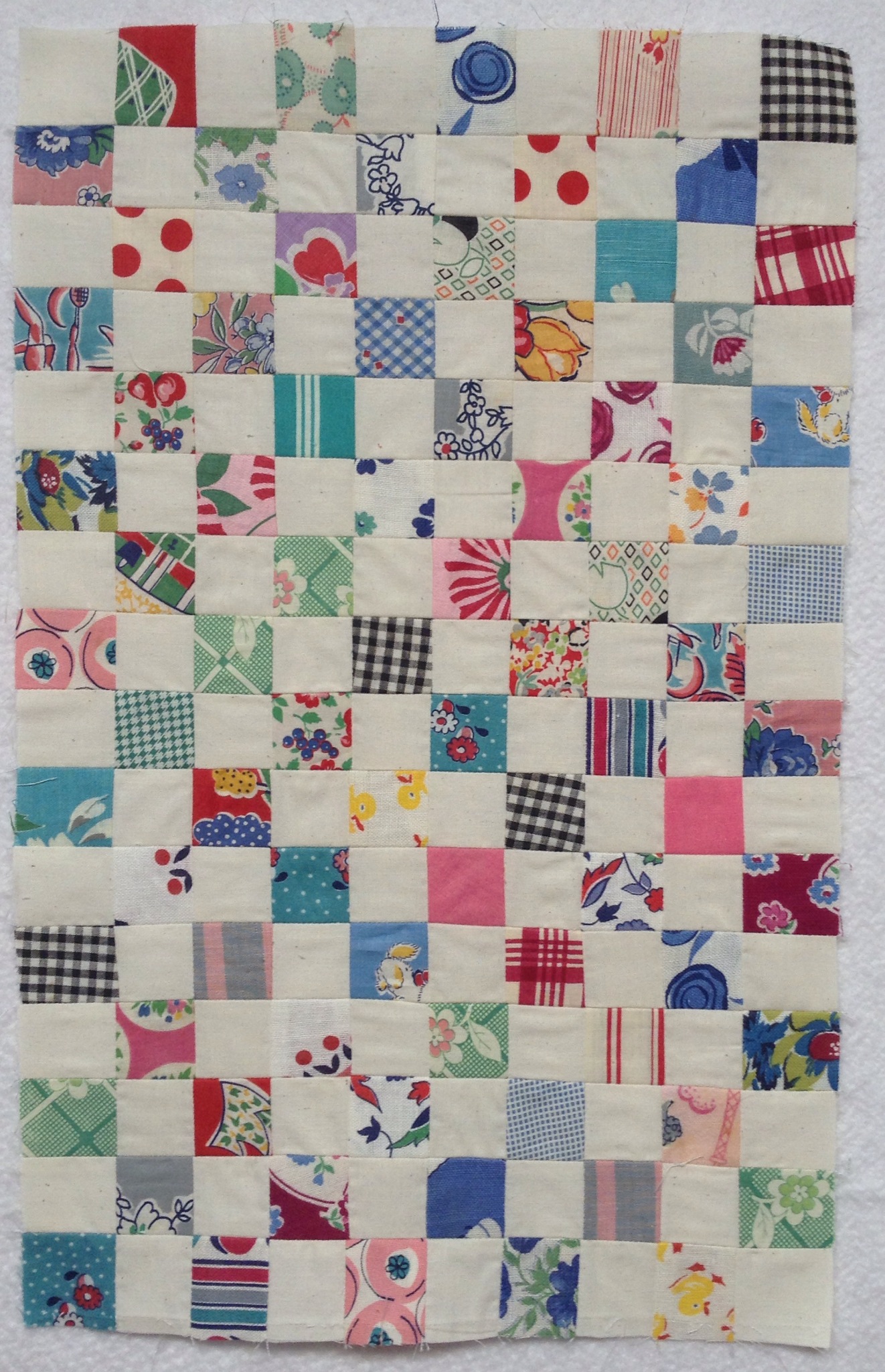 These squares finish at 1 inch. I had enough cut to make a couple more rows but I thought that would throw this all out of proportion. So I made another tiny top.