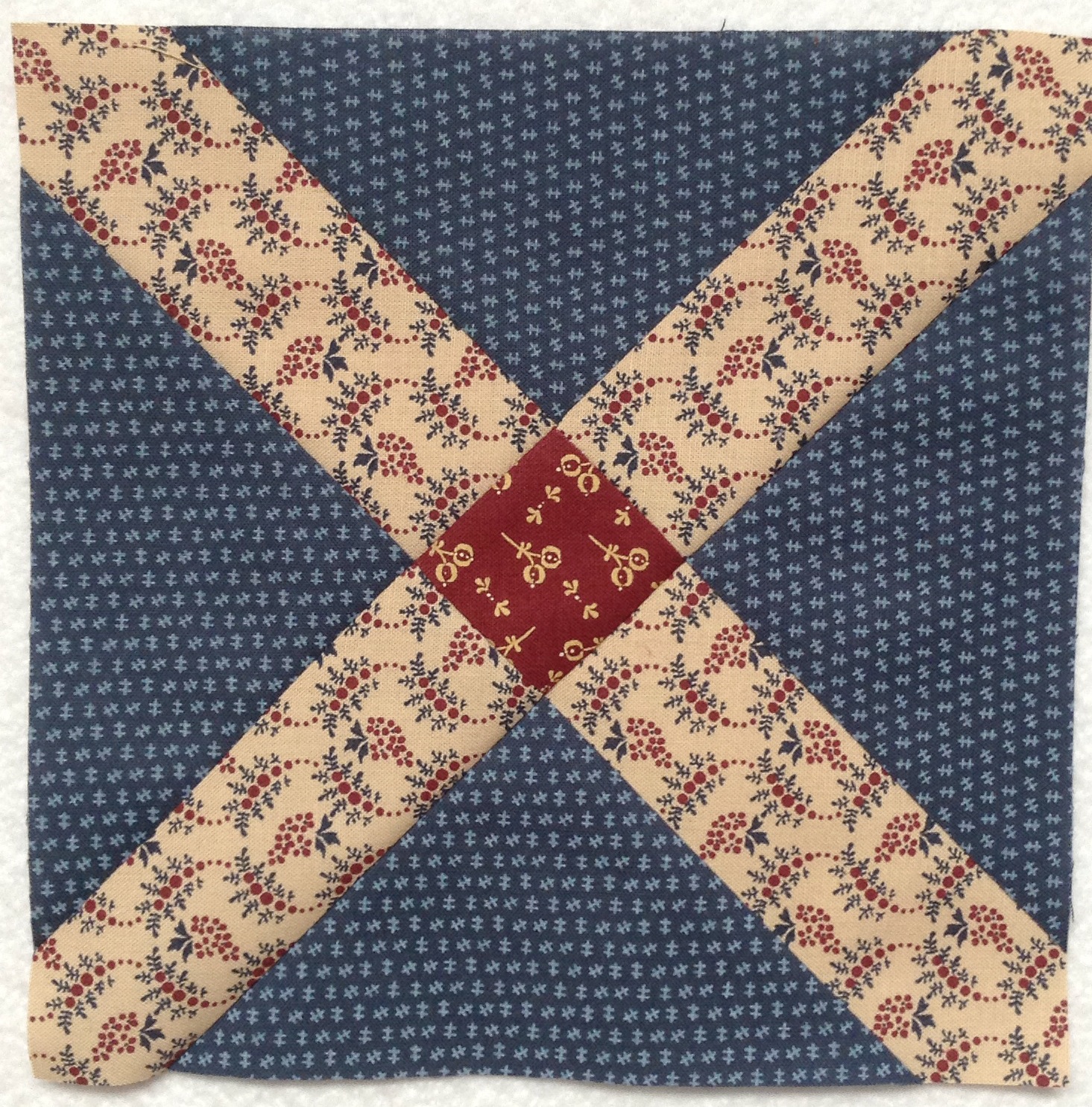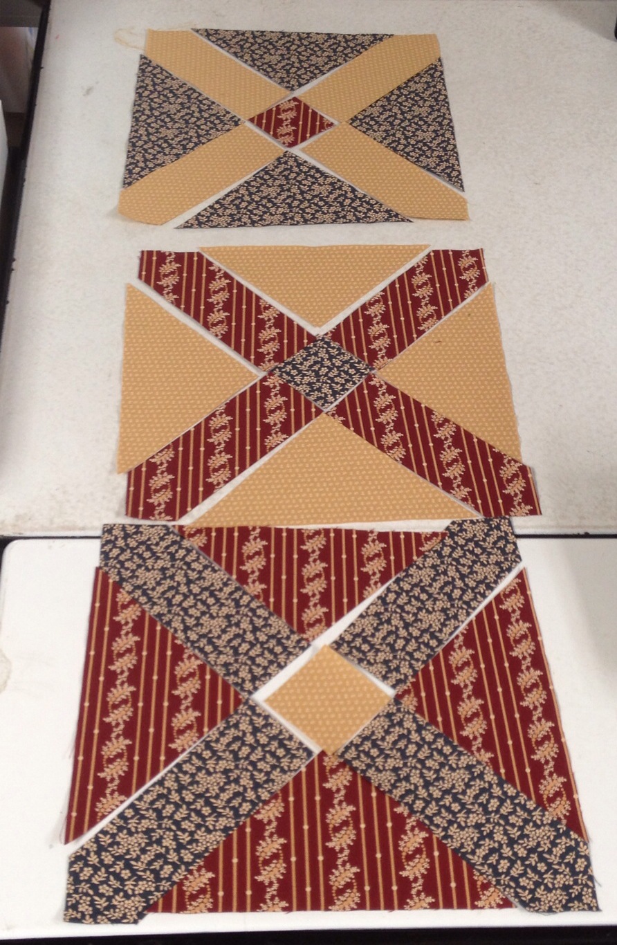 I like that this is a very efficient use of the squares. Not yet sure what this will become. There are enough squares to make 12 more blocks but that would still be a pretty small quilt.