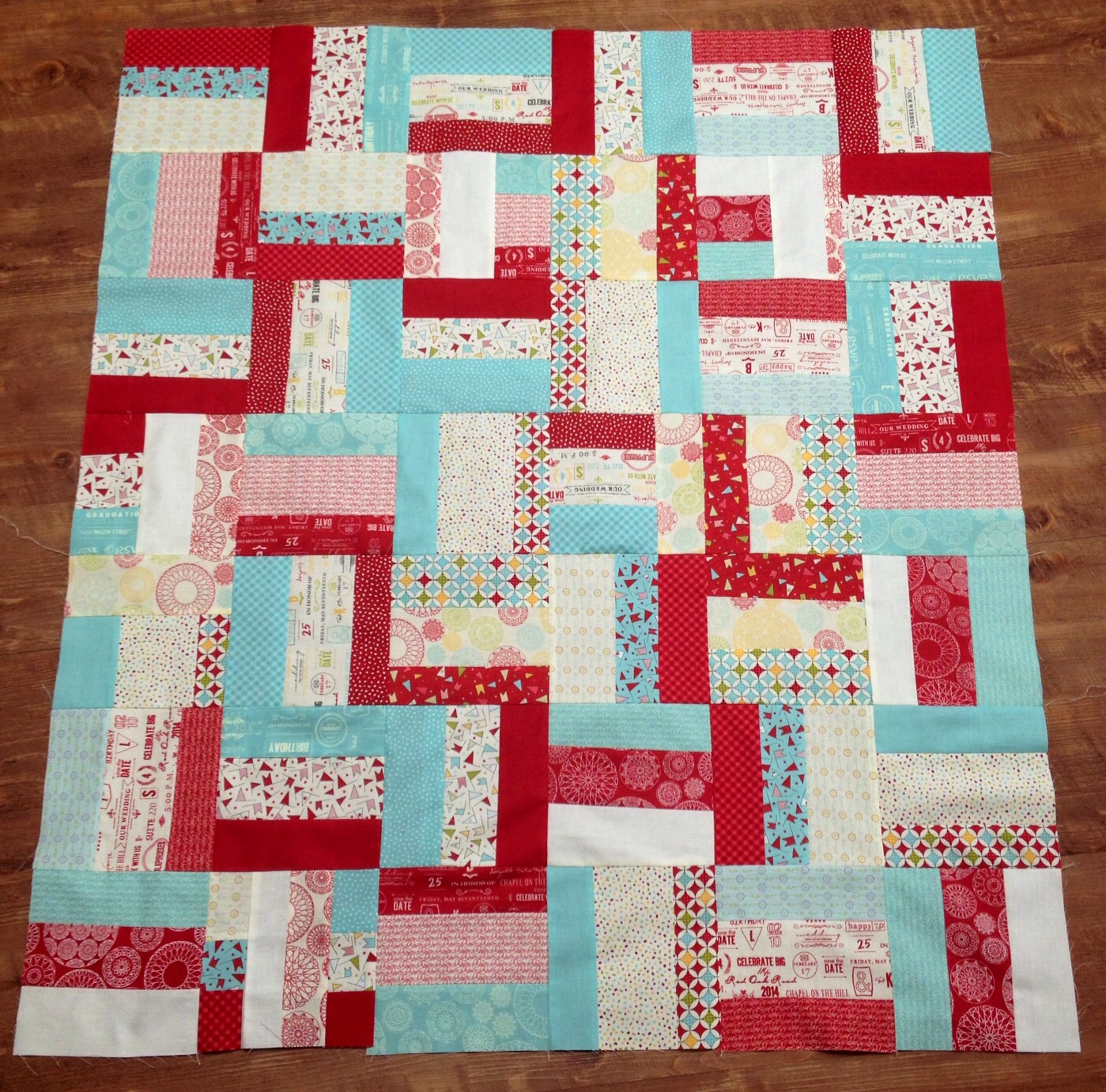 Love the combo of red/pink and teal. Amazing how a simple rail fence can look so good.