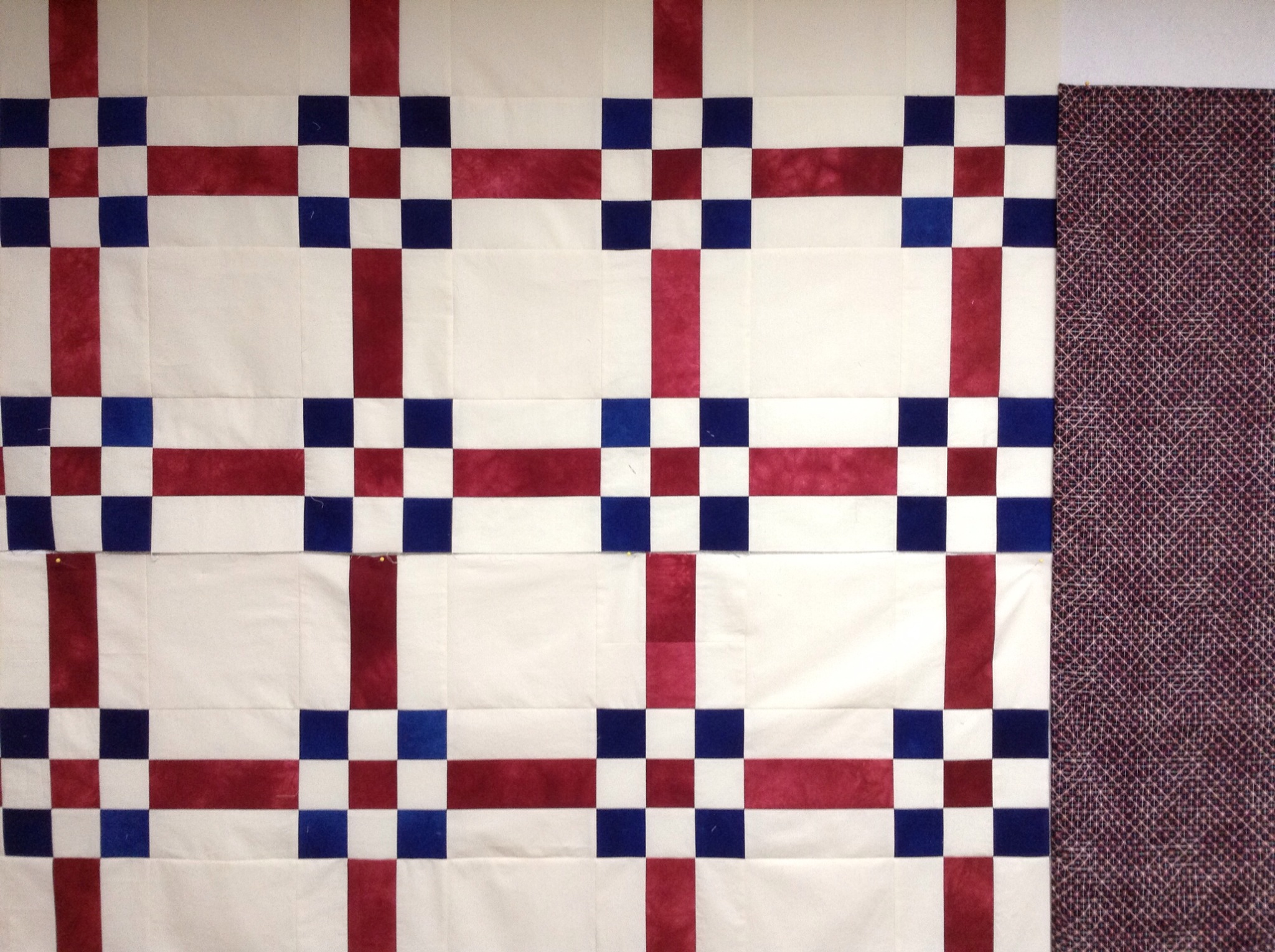 I really like the top where the blocks are heading to the closet. The pattern reminds me of Window Pane. I eally like what you have done with mixing colors and values. Hope it doesn’t have to hibernate too long.