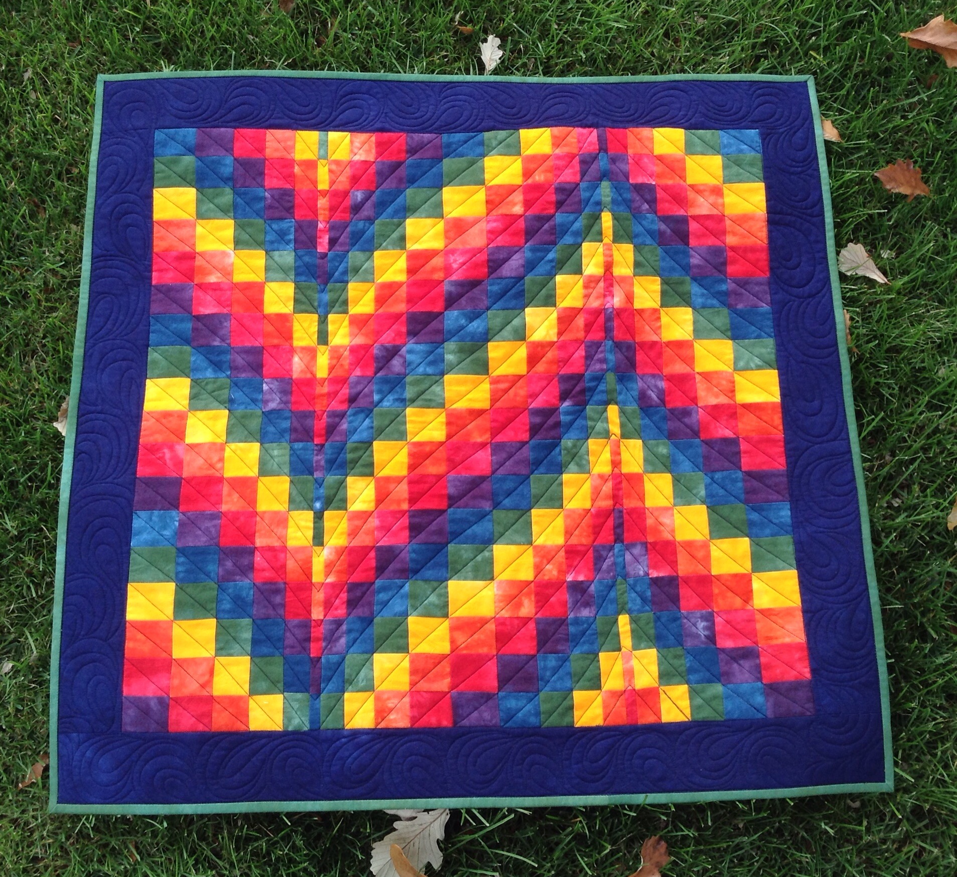 I like the rainbow bargello quilt – looks great with the border – calms it down a bit and ‘contains’ the riot of colour. Thanks for the binding video.