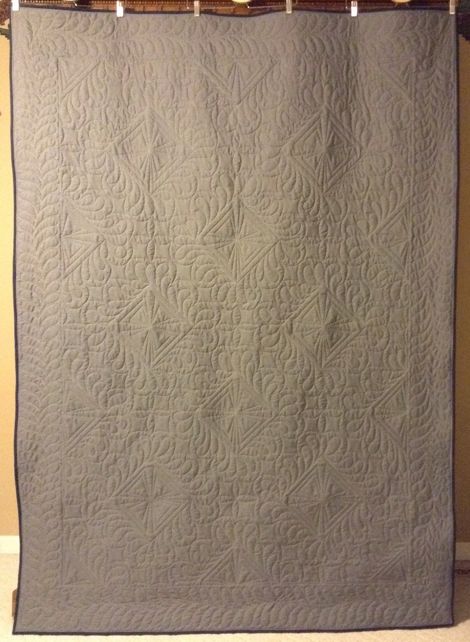 It s very rainy and dreary and I apologize for the less than stellar pics. The quilt really IS straight and square! By the way, I use these hangers from Ikea to hang my quilts from the top of my armoire to take pictures.
