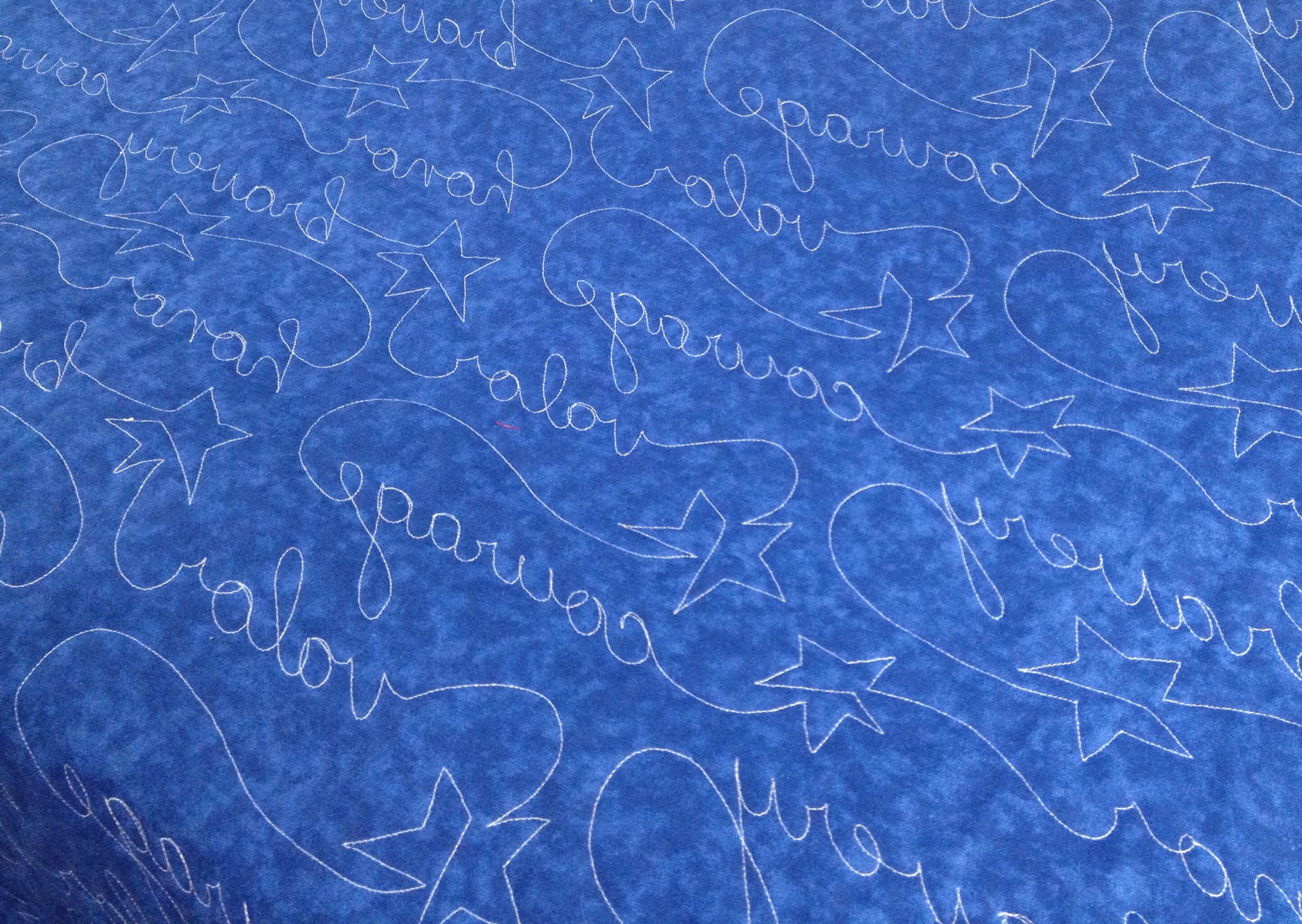 The quilt itself is a simple but lovely design. I can only imagine trying to write backwards! It turned out glorious on the backside!! Great job, Katy!