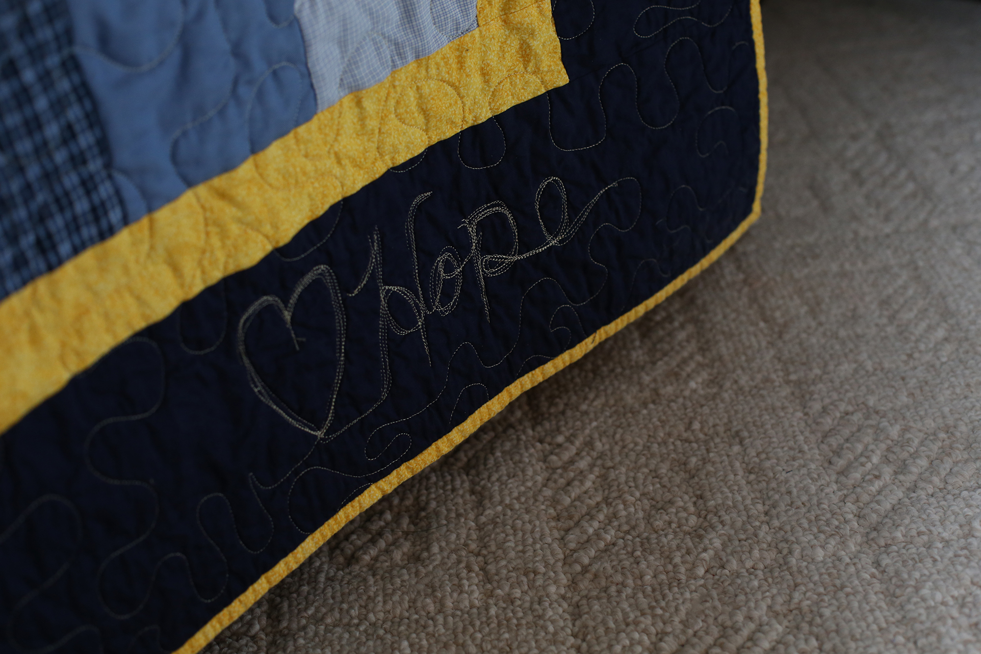 What a perfect quilt for her boyfriend! Love how it turned out. Good job! I sure wish my daughter was interested in quilting. Maybe some day.