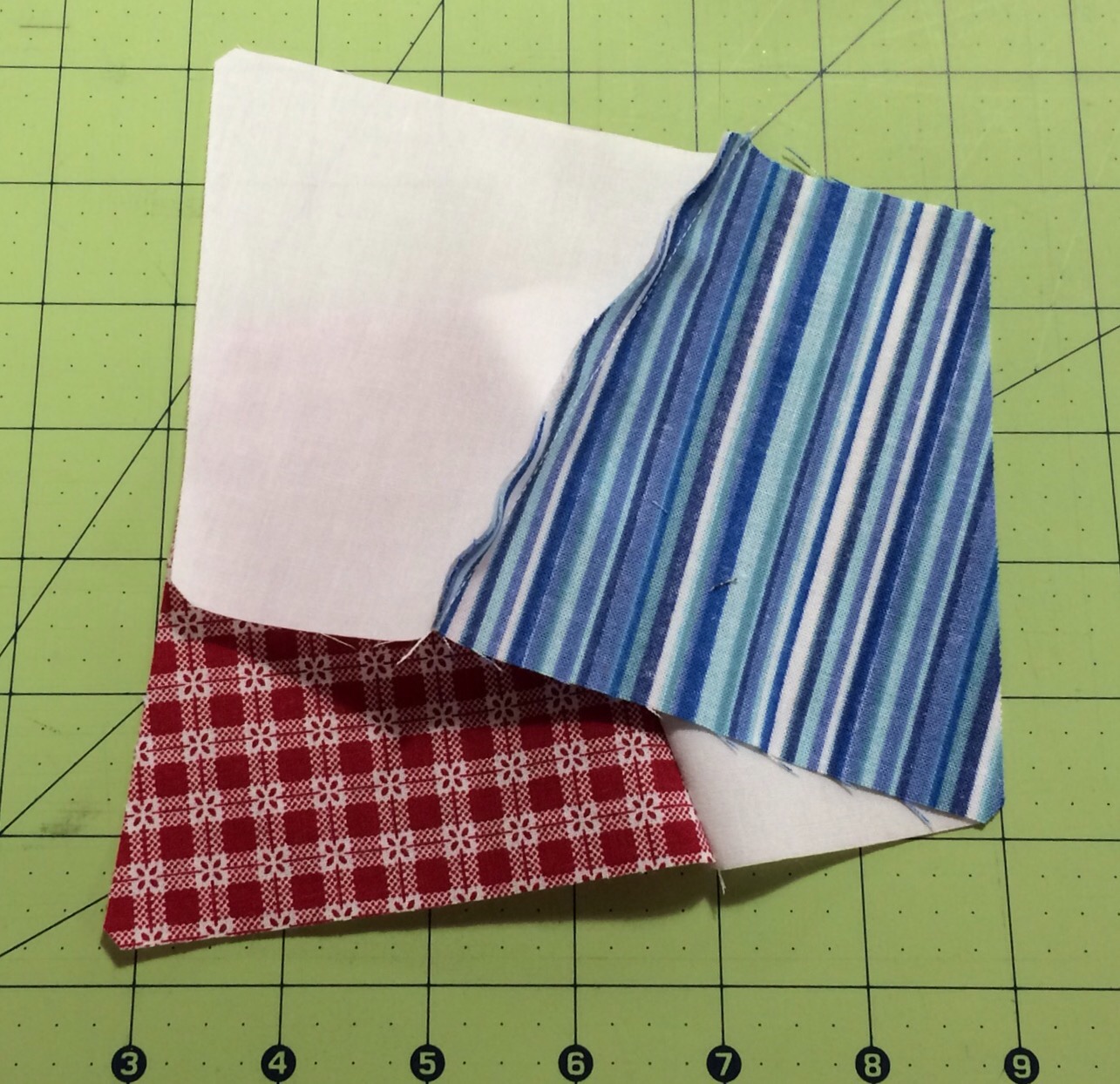 Here, I have turned them over so you can see that I have pressed the seams for each row in opposite directions. This is very important.