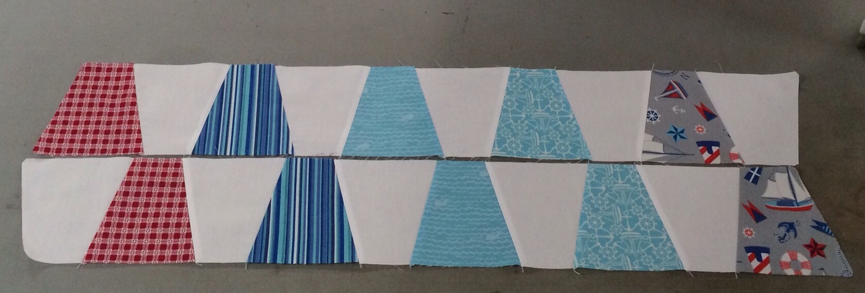 The next picture shows the entire first row pieced. See how much smaller it is after sewing?