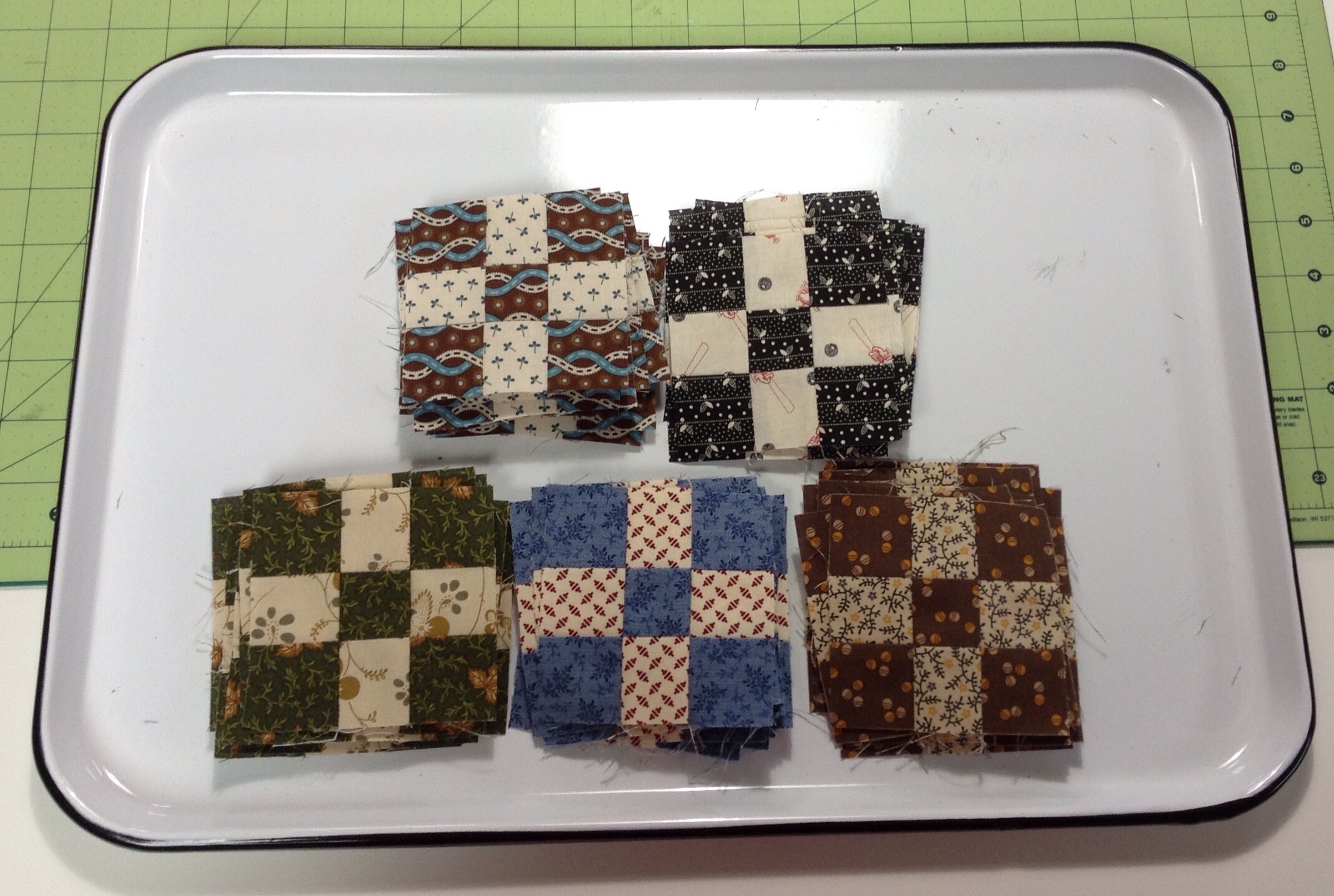 I am also taking part in an exchange with the Small Quilt Talk group. We are exchanging 3″ finished 9 patches. We each make up to five sets of ten blocks. I finished mine and sent them off to our swap hostess today.
