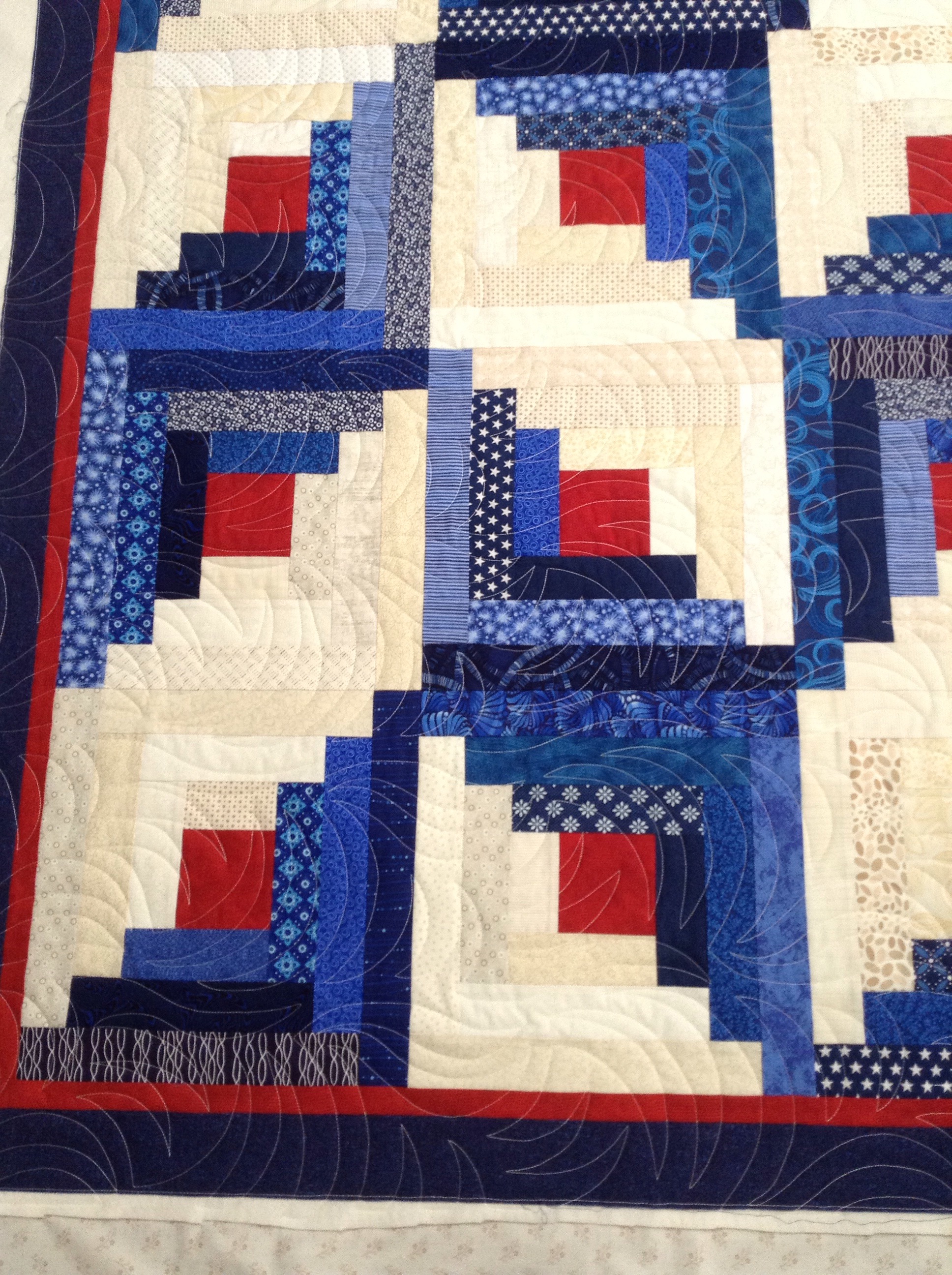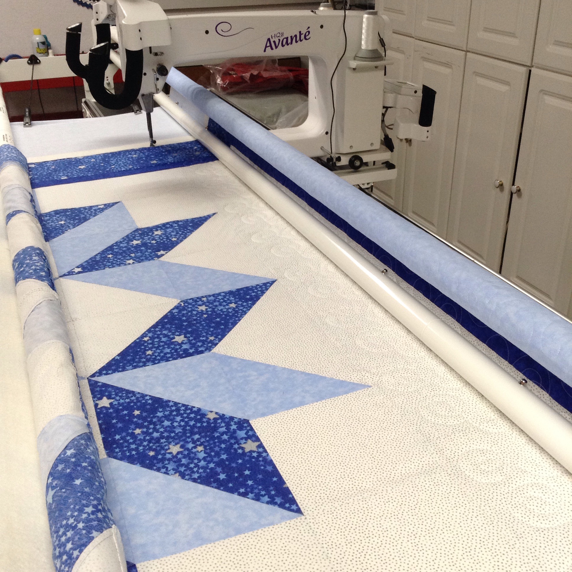 I’ve been too busy sewing to blog this week. I have been trying to get all the Quilt of Valor tops for the Stitching Sisters group quilted up before I head out to Arizona. Here is the one currently on the frame: