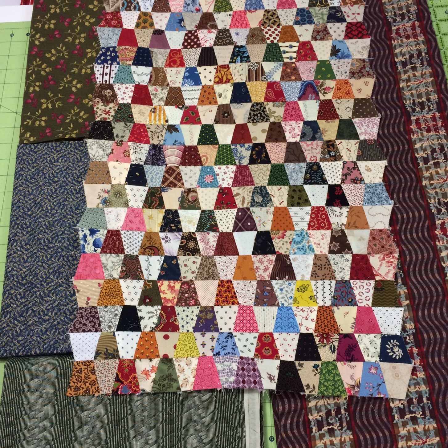 Happy Wednesday! I have a couple works in progress this week. Remember the tiny tumbler project? I was going to take this to Arizona with me. But I started piecing on Monday and didn’t stop!