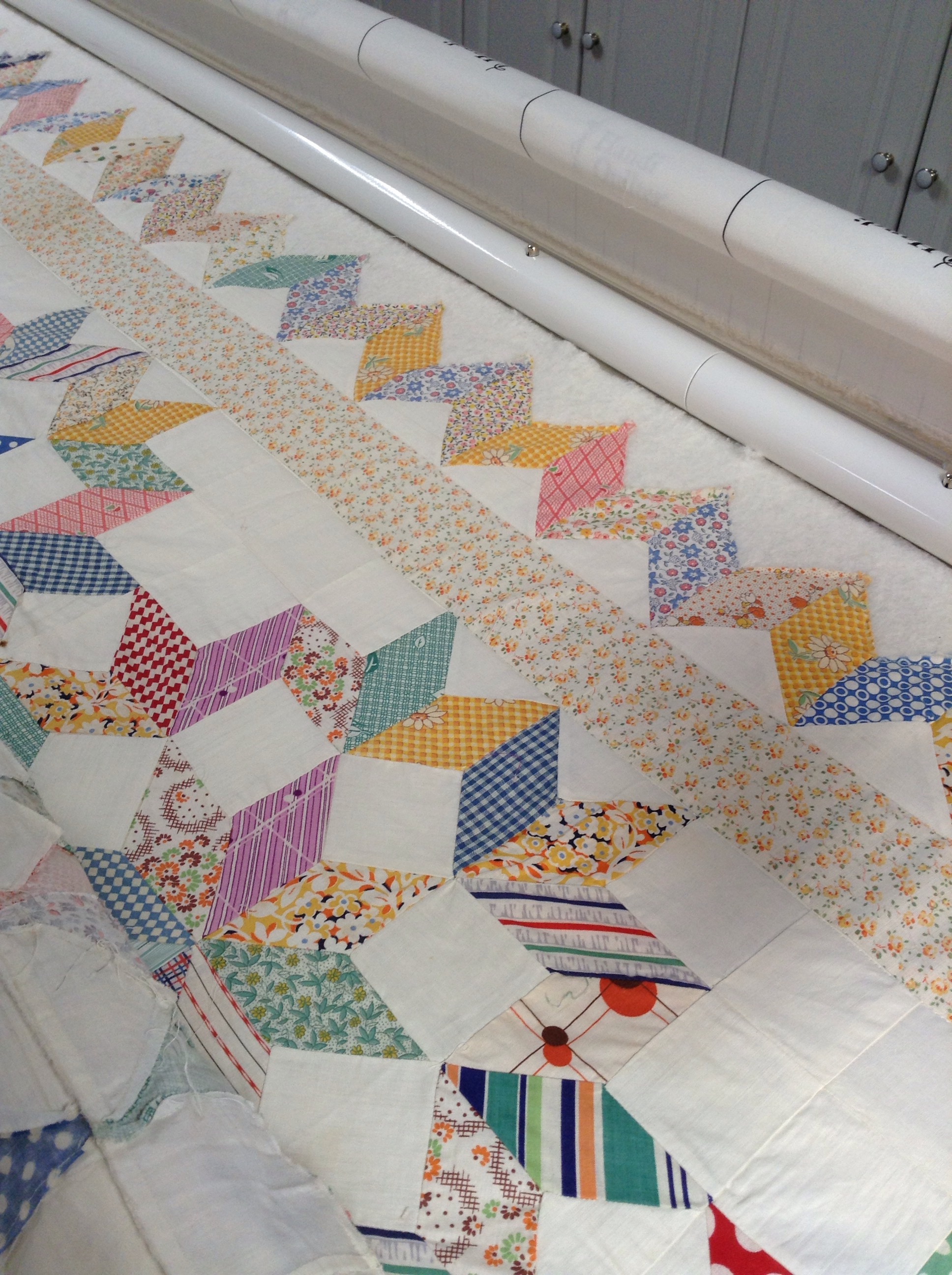 The vintage top is gorgeous. So glad to see that piece of history is being made into a quilt.