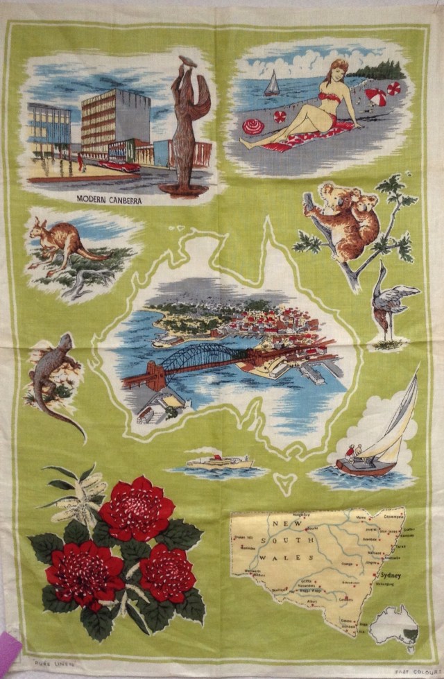 Isn’t it awesome? I have been collecting vintage tea towels for a while. Not sure why or what I will do with them. But I love them.