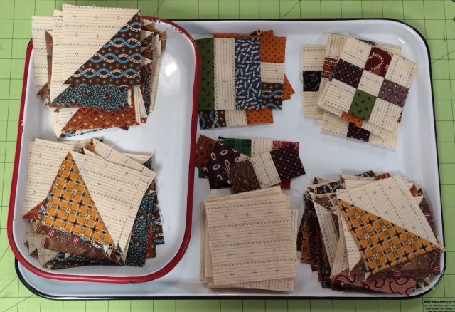 All the HSTs are done. But you see my 9 patch and rail fence piles are lacking.