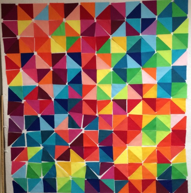 Brilliant use of a layer cake. The colours are wonderful! Maybe it’s one of those quilts that can be truly random – no need to spend ages moving pieces around to make it look random (in a balanced sort of way!).