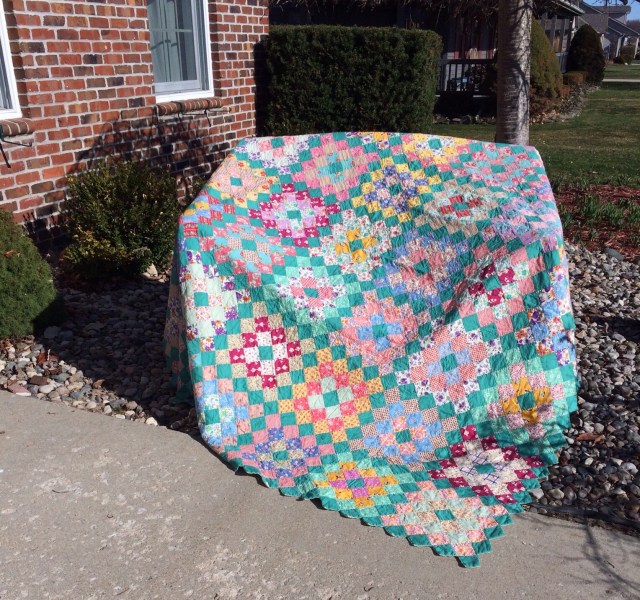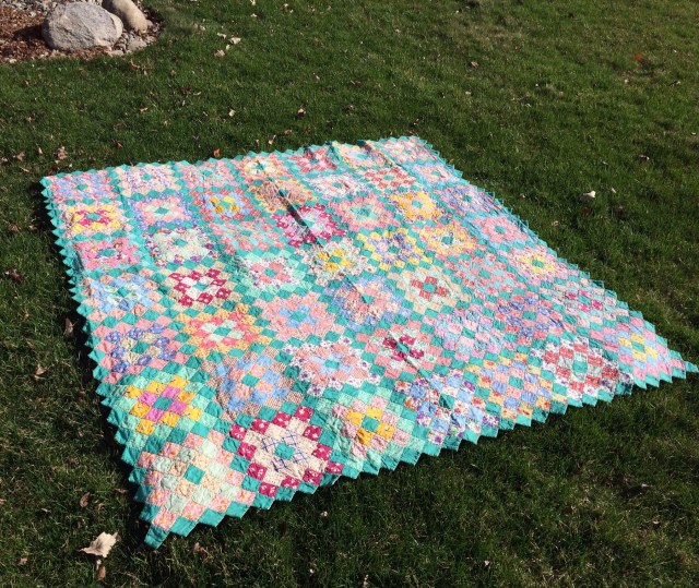 It’s a wonderful quilt that appears to be hand quilted. Was it hand pieced too? I can’t imagine anyone giving something that precious away.