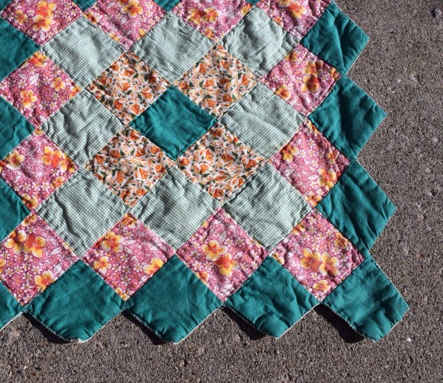Beautiful! The 30’s green sets off the blocks in such a lovely way. With all the work, it looks like it was made with love–and the condition suggests that it was loved too much to use, maybe? How wonderful for you!