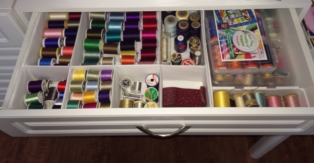 Good Morning! I hope it is as lovely where you are as it is here! Spring seems to have finally arrived! I mentioned earlier that I went down to Ikea with Daughter #1 last Monday. I didn’t come home empty handed :). I purchased a drawer organizer to use with some of my thread. This is all the miscellaneous thread that I have collected. As I cleaned this drawer out, I did throw out some questionable stuff that had crept in over the years.