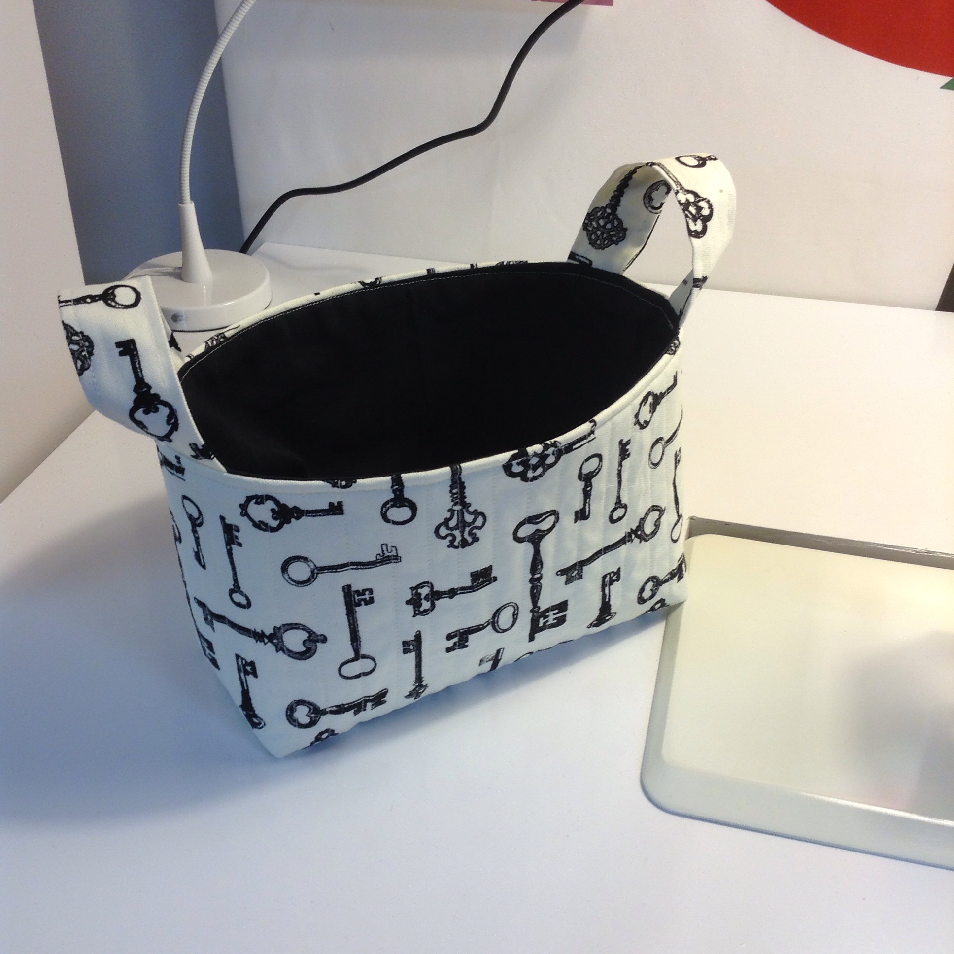 I had a lovely weekend with the family that lives here in town. And yesterday I got a bit of sewing done as well. Have you seen the One Hour Baskets everyone seems to be making? KelbySews has offered a free tutorial and you can find all the details here. It is a great pattern, very easy to follow. Here is my version.