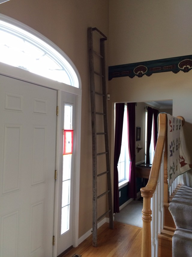 Saturday we went to a bunch of area garage sales. I found something I have wanted for a long time, a vintage ladder to hang quilts on for the princely sum of $5!