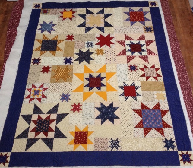 I especially like the star quilt – I definitely have to have one on my long term to do list! The Stitching Sisters QOV group must be so appreciative of your quilting 🙂