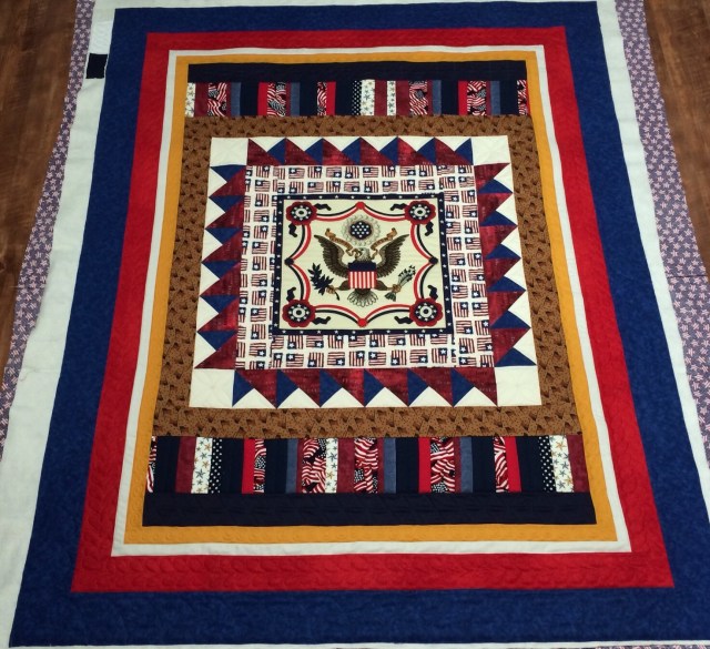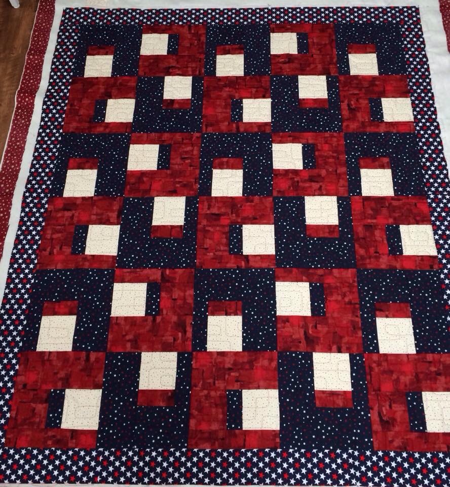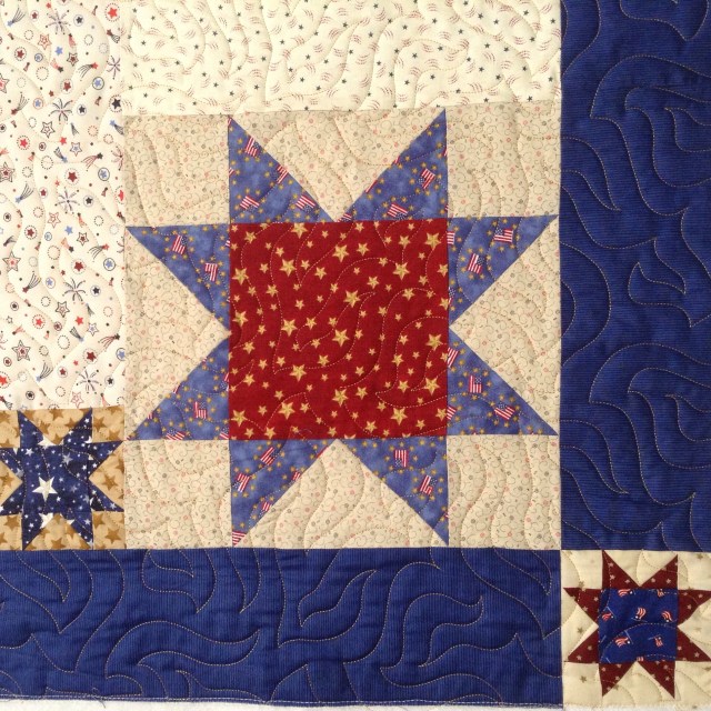 I have two Quilt of Valor finishes to share today. These were both pieced by members of the Stitching Sisters QOV group. They will go back to them for binding, labeling, and presenting. This lovely star quilt was made by Susan.