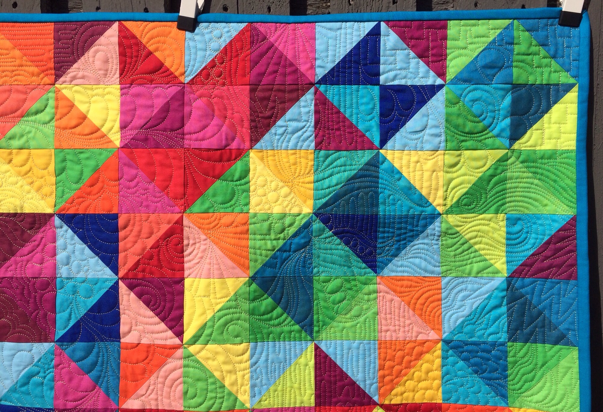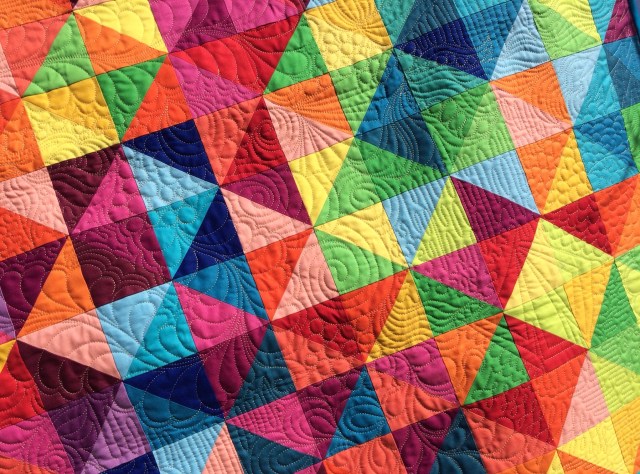 a gorgeous bright and colourful quilt, beautifully quilted!