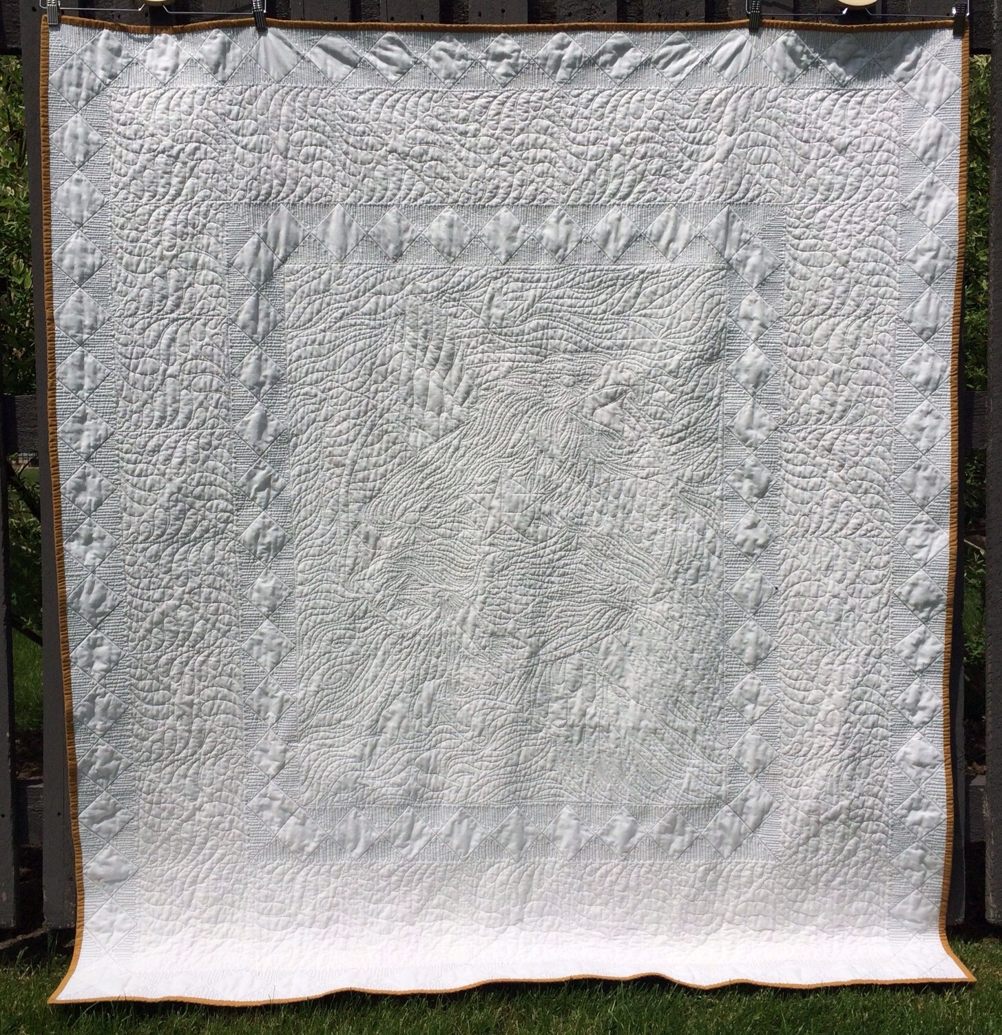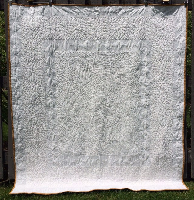 This quilt is awesome! I know you said you weren’t 100% happy with the white, but it really does show off the gorgeous quilting!