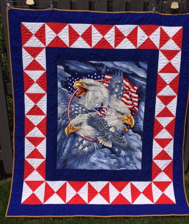 The receiver of this stunning quilting, I’m sure, will cherish it forever. Your quilting has made this quilt come to life. Simply beautiful. I too say Thank You for what you do for our Service Men.