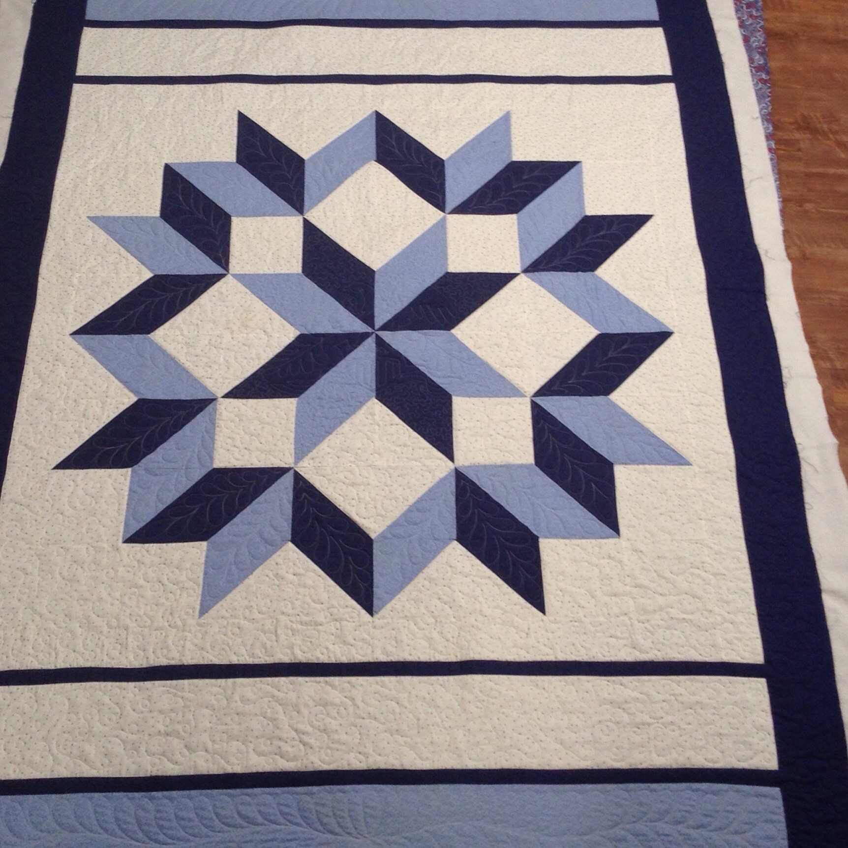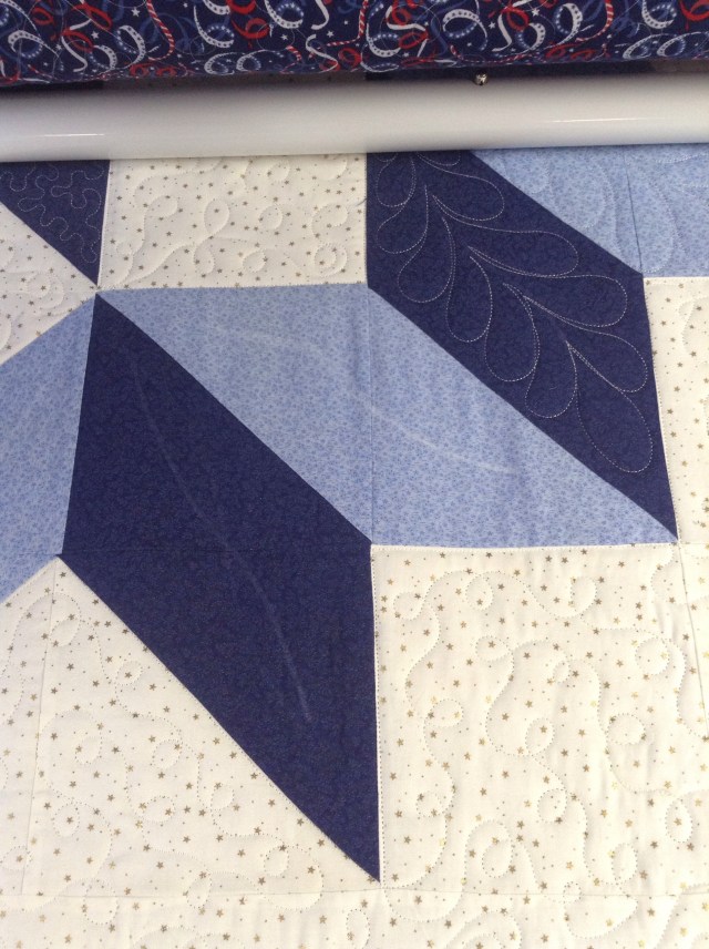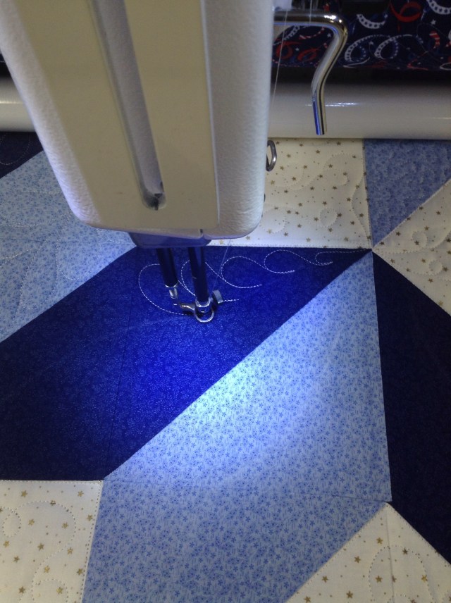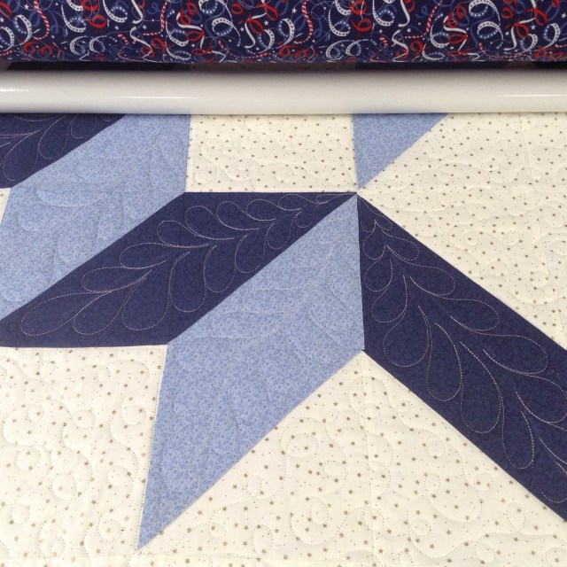 That eagle in the middle is actually part of a pantograph. I centered the eagle and just stitched that part of the panto. I surrounded it with a small stipple. I went with a simple loopy freehand pattern in the background.
