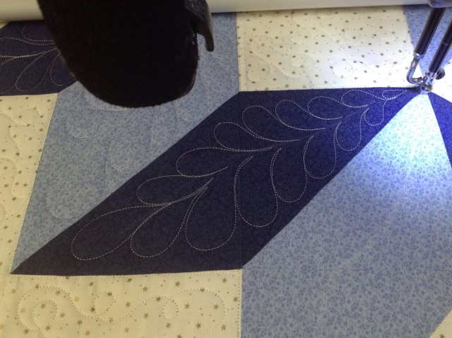 For my “spineless” feathers, I just drew a chalk line and stitched feathers going up one side and down the other.