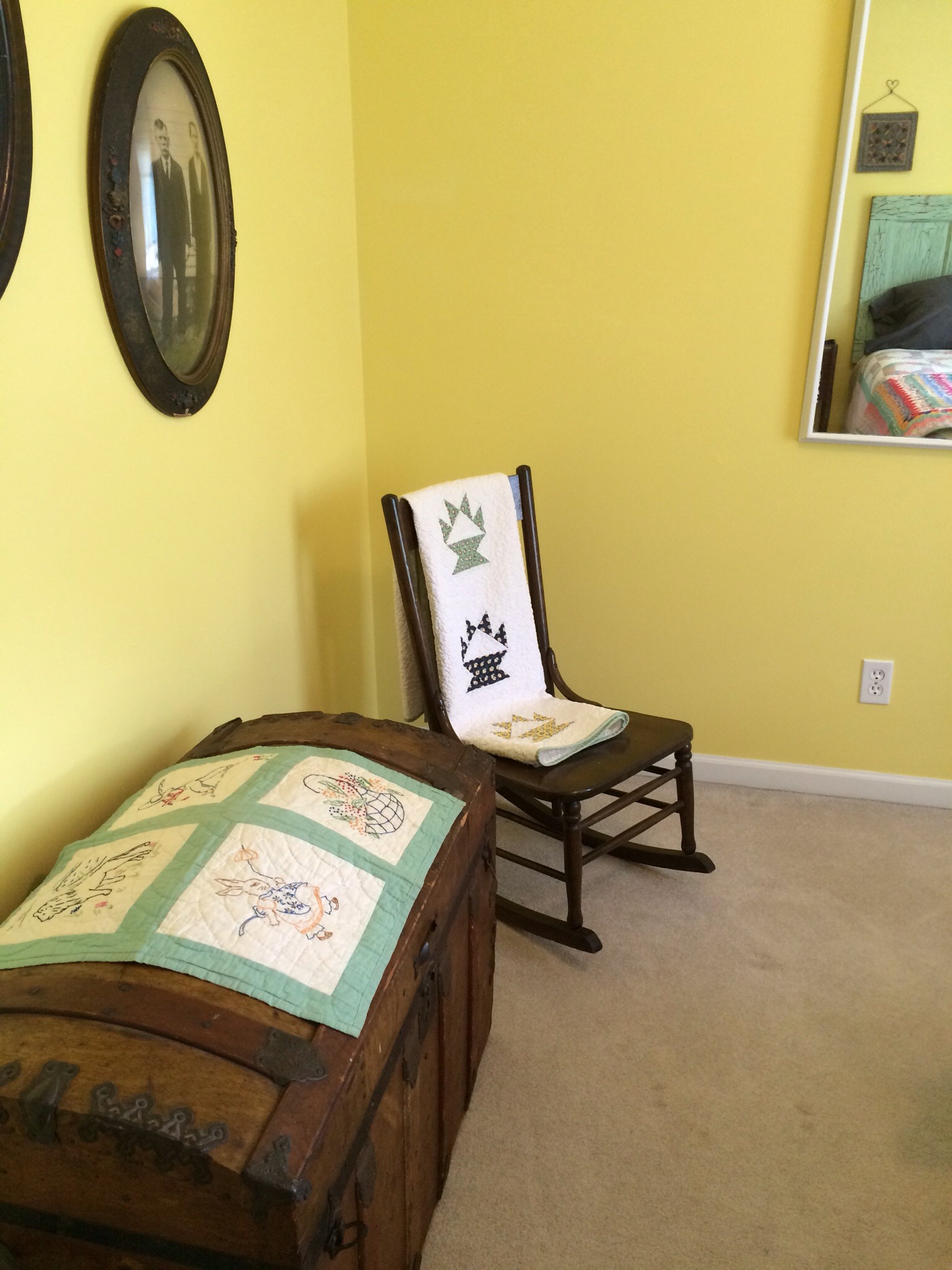 I like the gray walls in there and this gives me a chance to use some of my brighter quilts. There is plenty of work to be done yet in there.