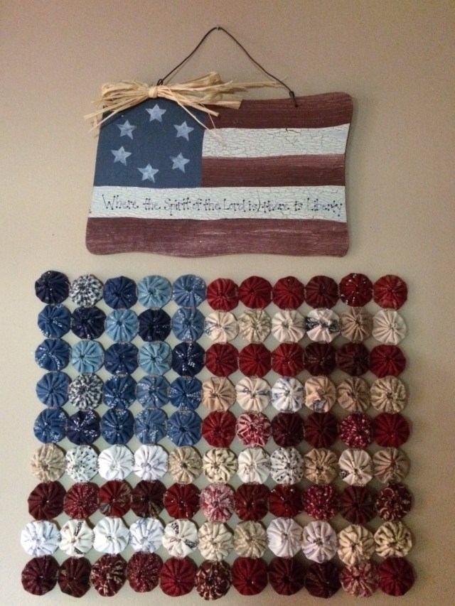 Beautiful flag quilts… the yoyo is my favorite one 🙂