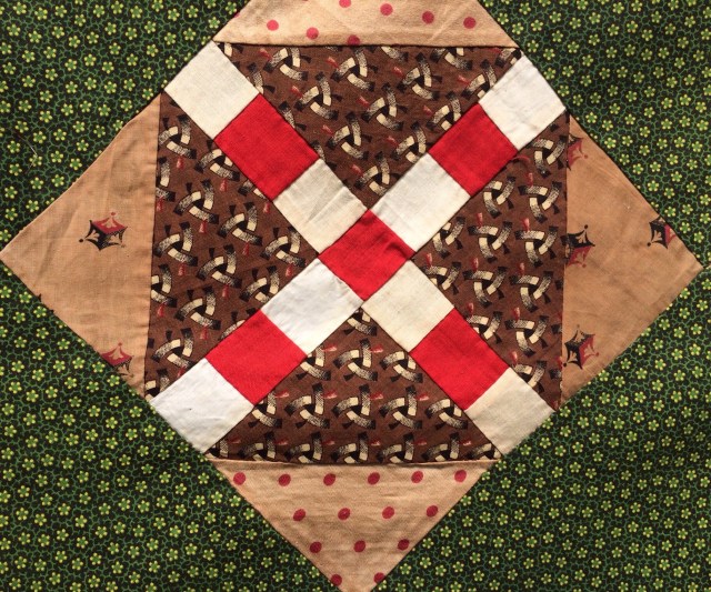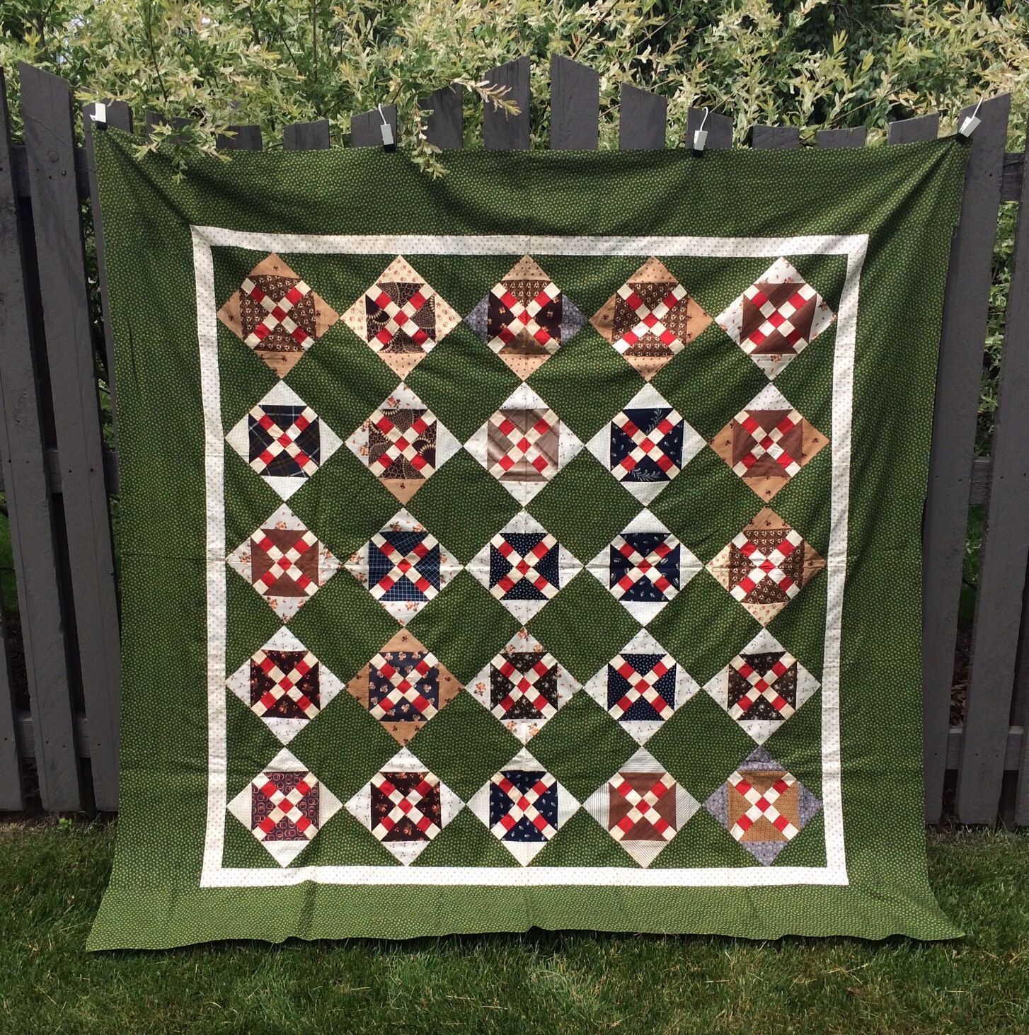 I purchased this antique quilt top a couple years ago. I found it in a thrift shop for the princely sum of one dollar! I took advantage of some nice weather recently to take some better pictures of it.