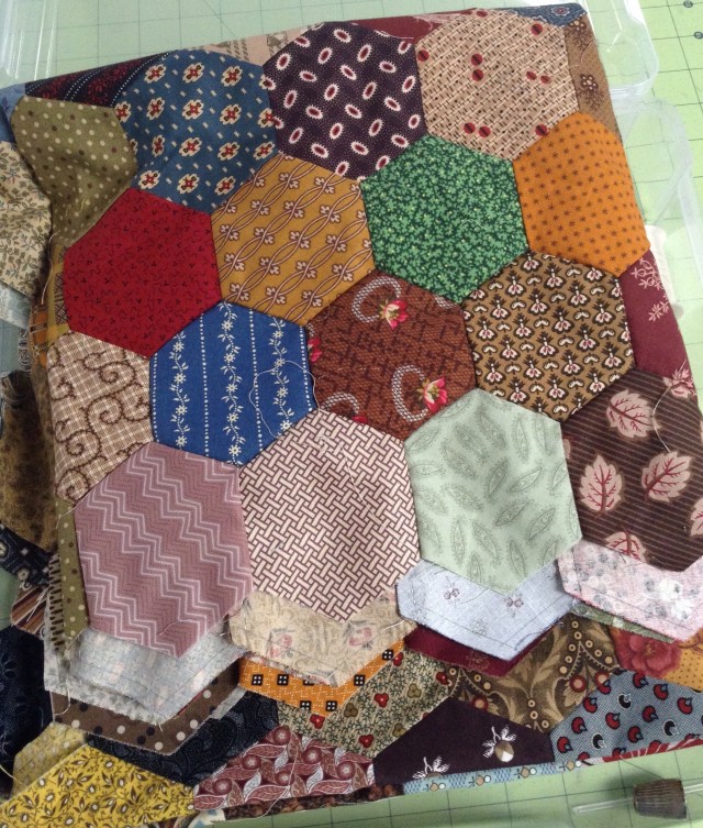 I love those little machines. I made a clothes-pin bag for my mom years ago when hers fell apart and we couldn’t find another. That is a great find. Love your hexies.