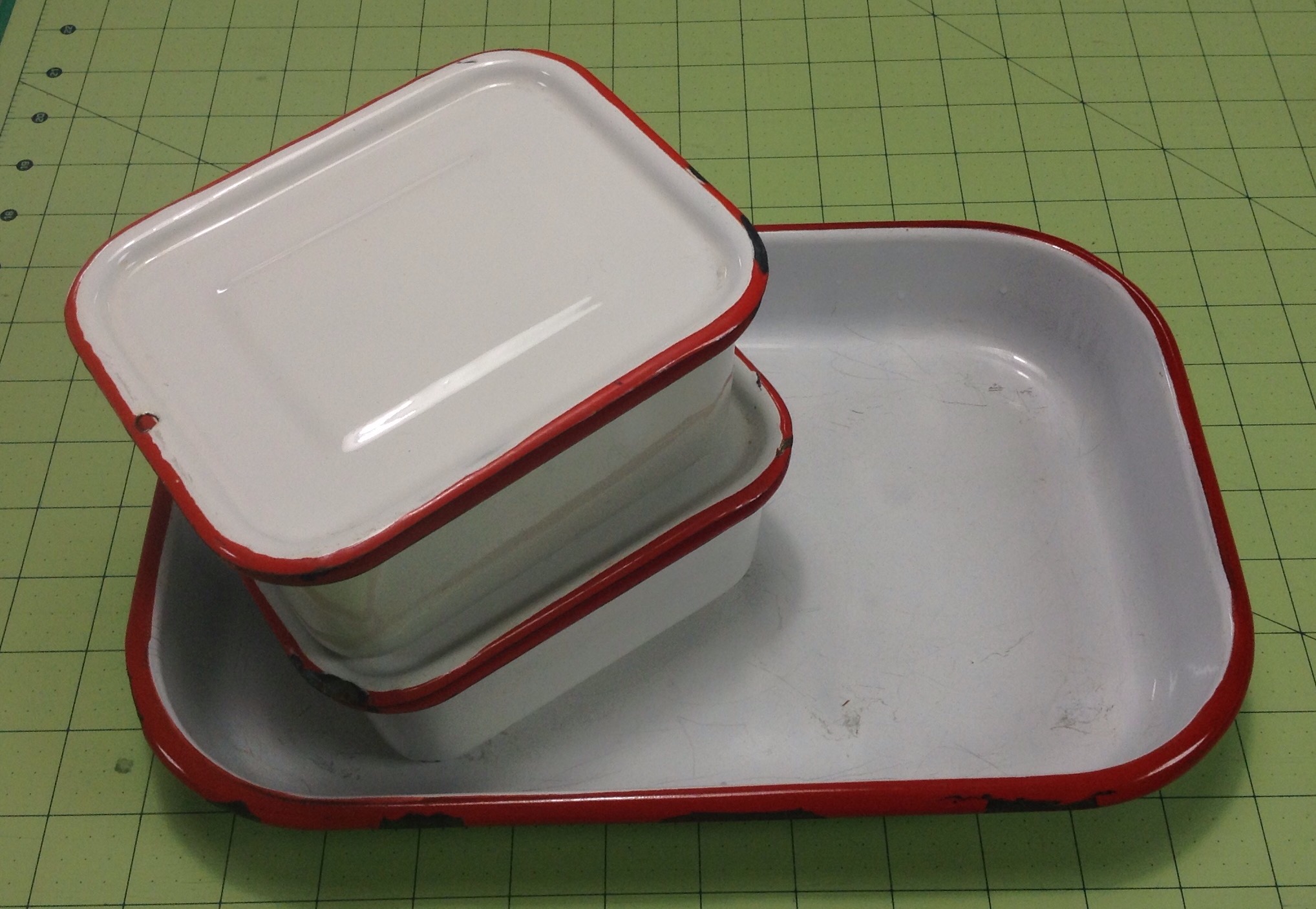The little machines are precious! I will keep my eye out for some of those enamel ware boxes with lids–they look like great storage for sewing goodies.