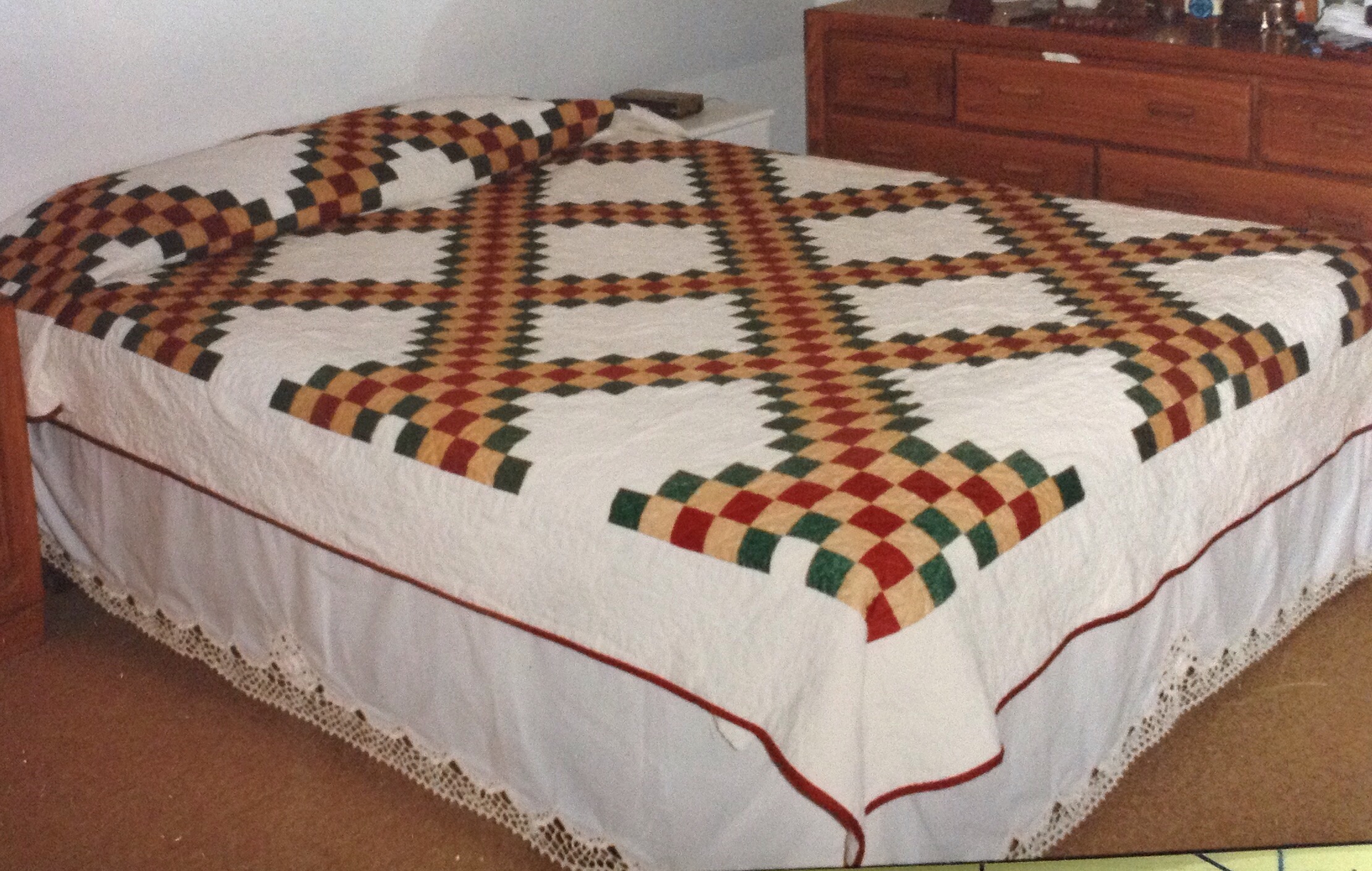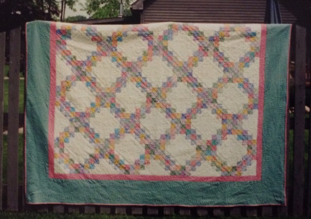 In digging through old pictures looking for this, I realized I made an Irish Chain quilt for this same sister 16 years ago.