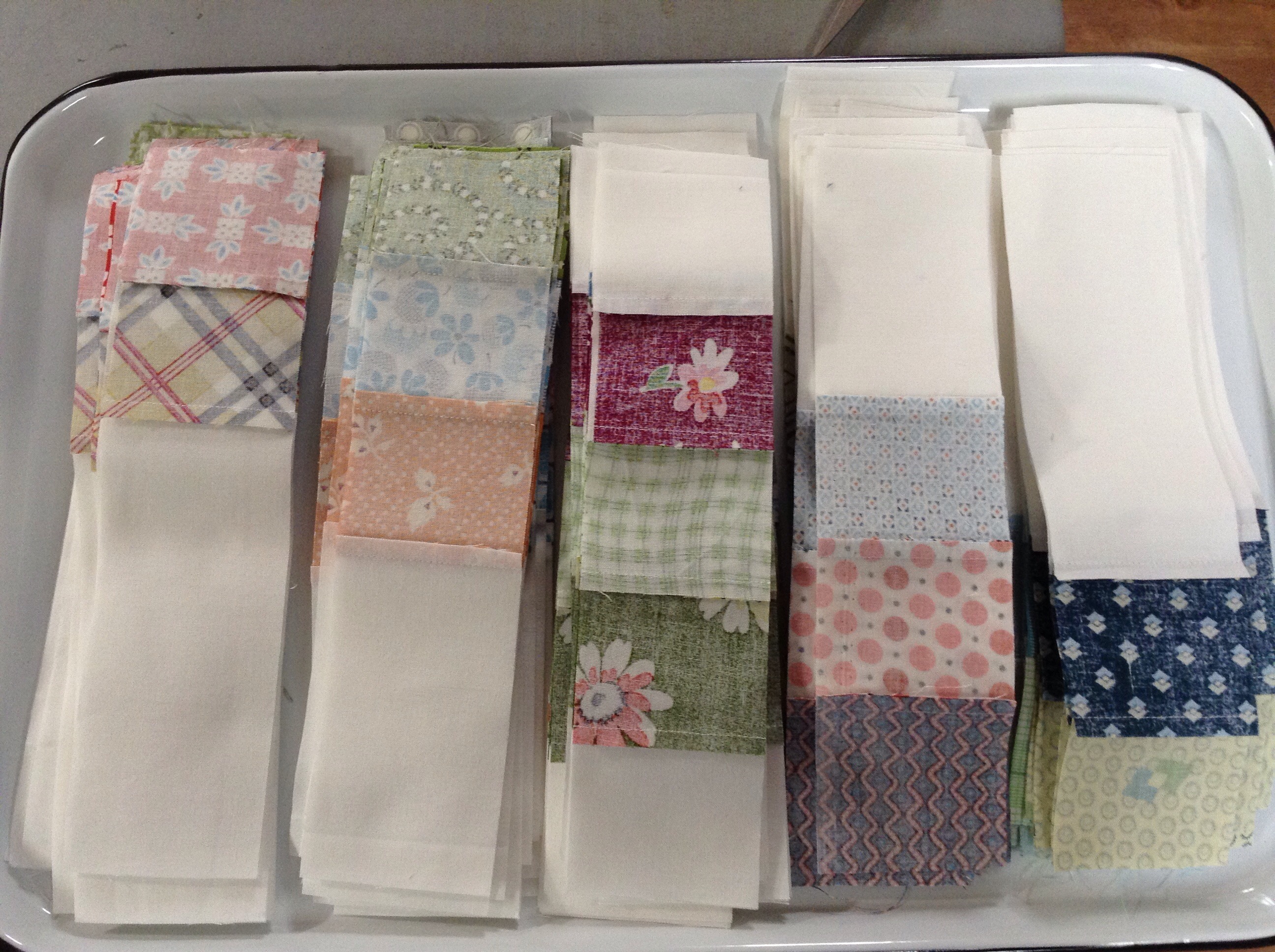 I got all the rest of the strip sets sewn and sub cut yesterday. This is not a final layout but it does show one of each strip set.