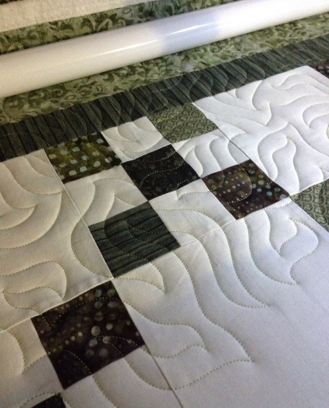 My friend, Donna, recently finished piecing her first quilt. I am the lucky one that got to quilt this beautiful Single Irish Chain!